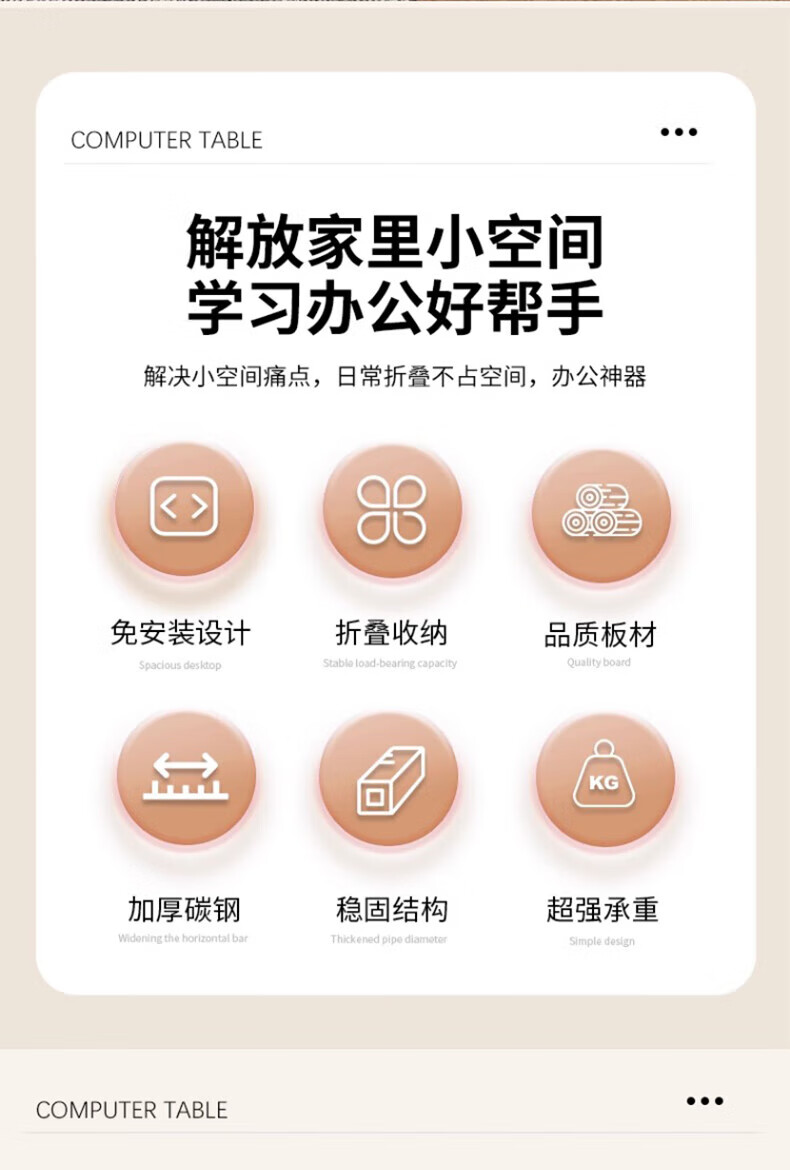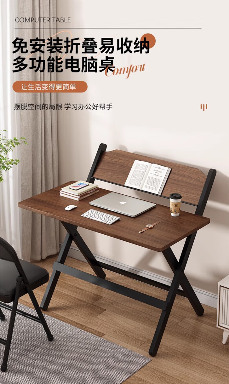 Folding table, movable desk, new computer table, small dining table, home study table, simple rental house bedside table, installation-free 80*40 snow mountain white study table - 4-speed lift