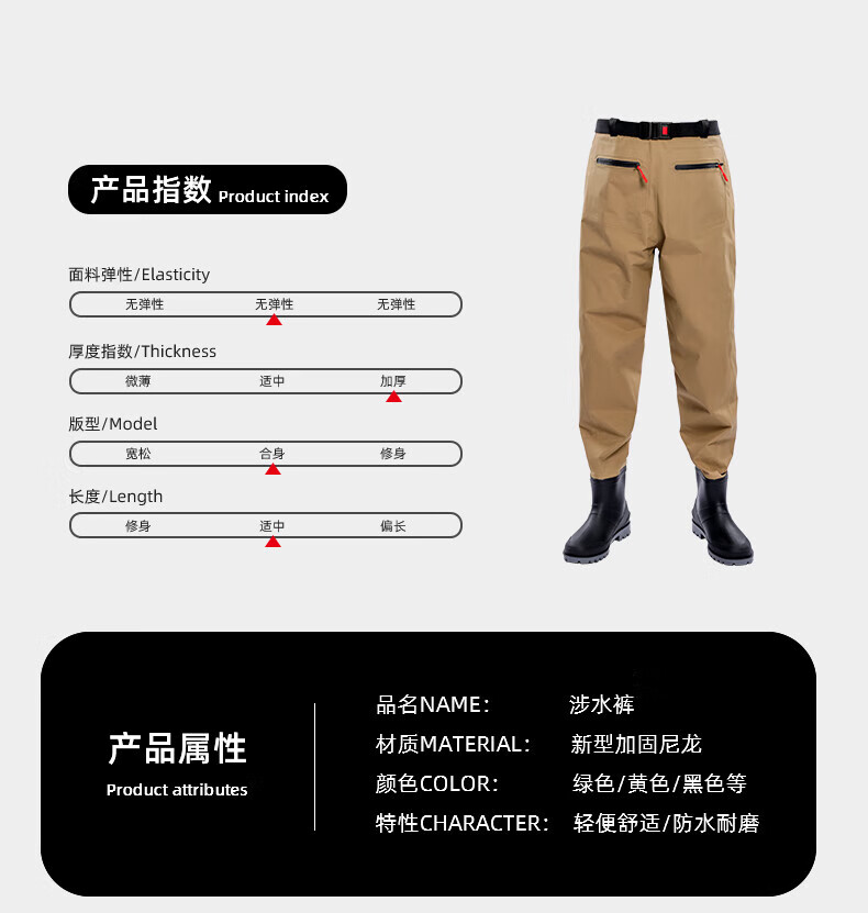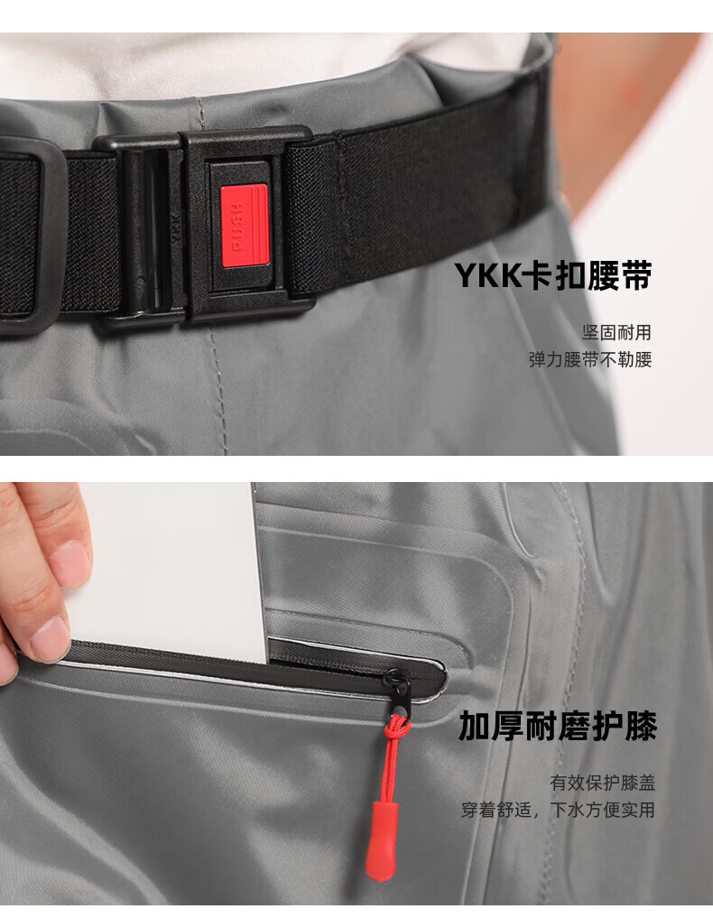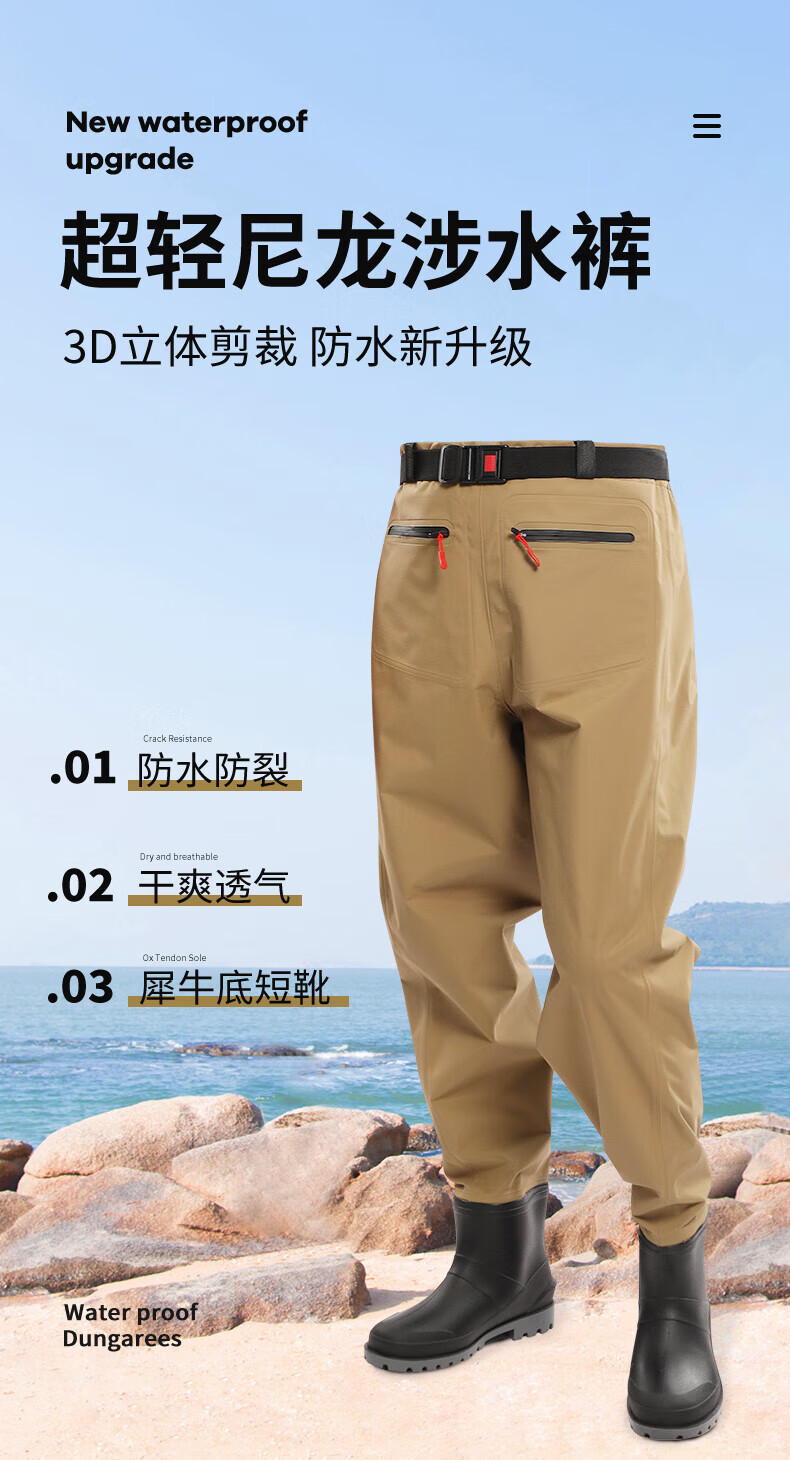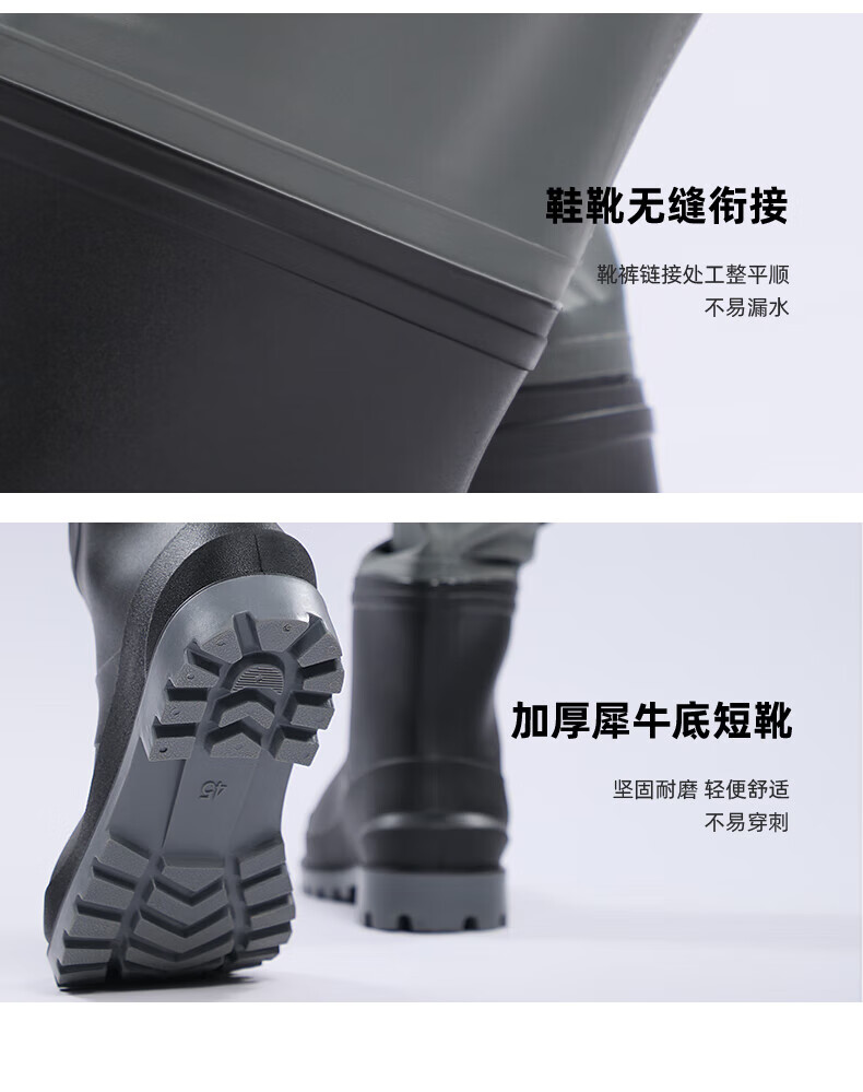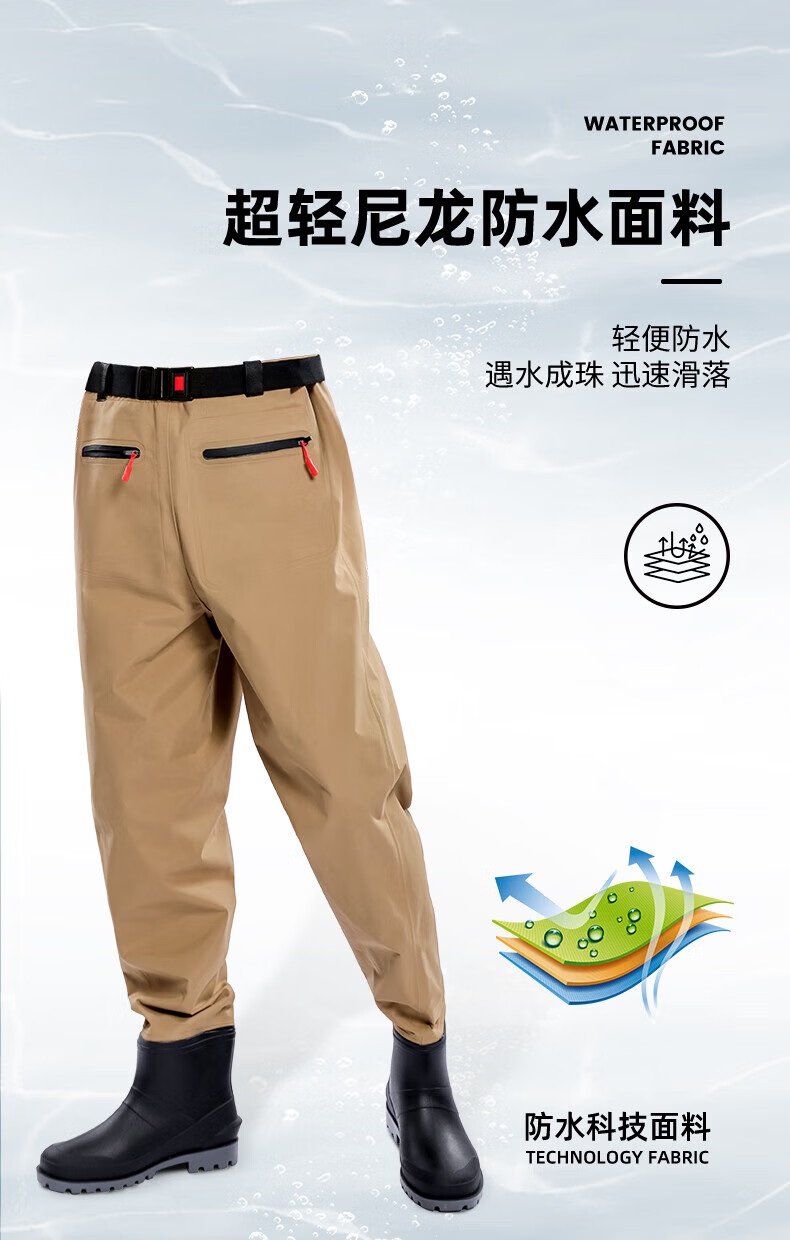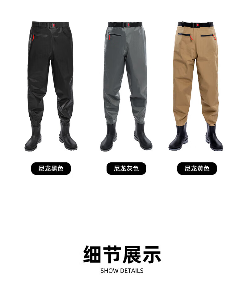 He Jiagong waist-length wet rain pants with rain boots one-piece lightweight 2025 new men's half-length wading fork pants fishing clothing gray-nylon fabric rhinoceros shoes main picture one size fits all 1 piece 36 shoe size