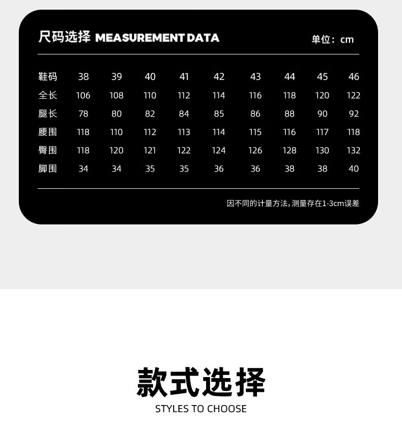 Outseam (cm) 99 cm 101.5 cm 104 cm 106.5 cm 109 cm