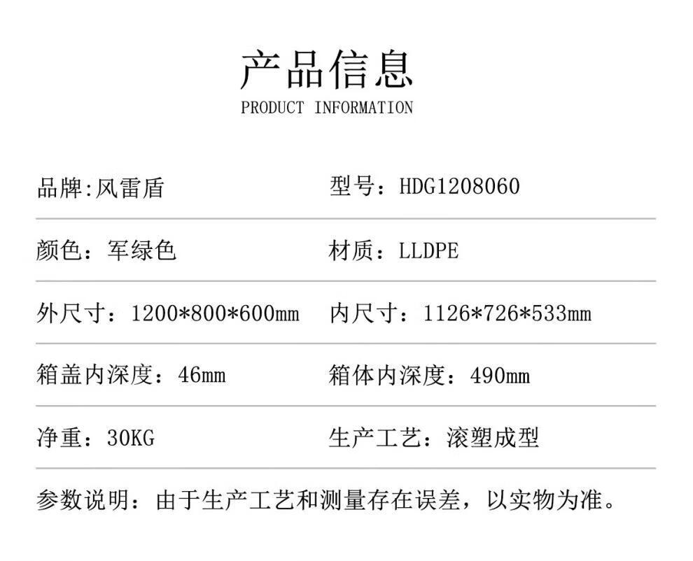 Rotational molding box 1200*800*600mm three-proof box storage equipment box material transport box precision instrument box military green wheelless model_(standard cotton)