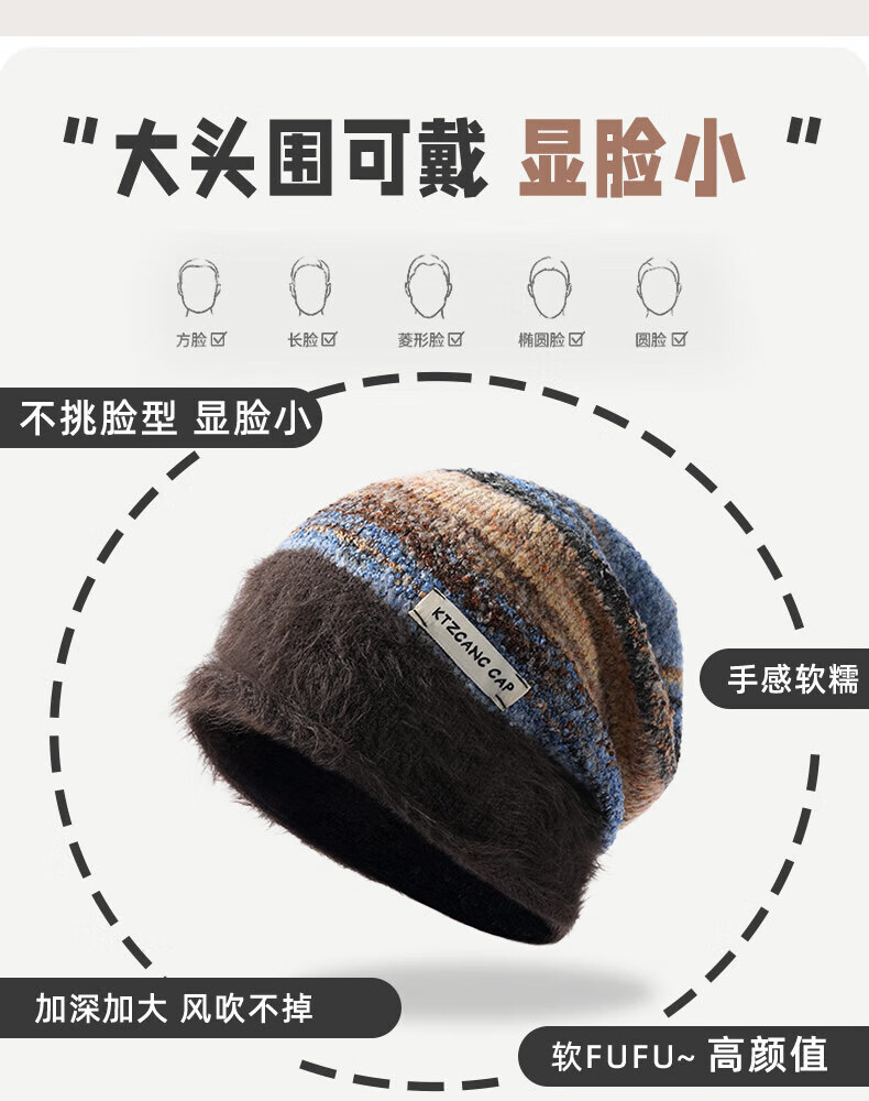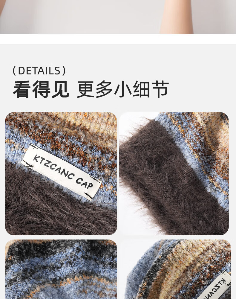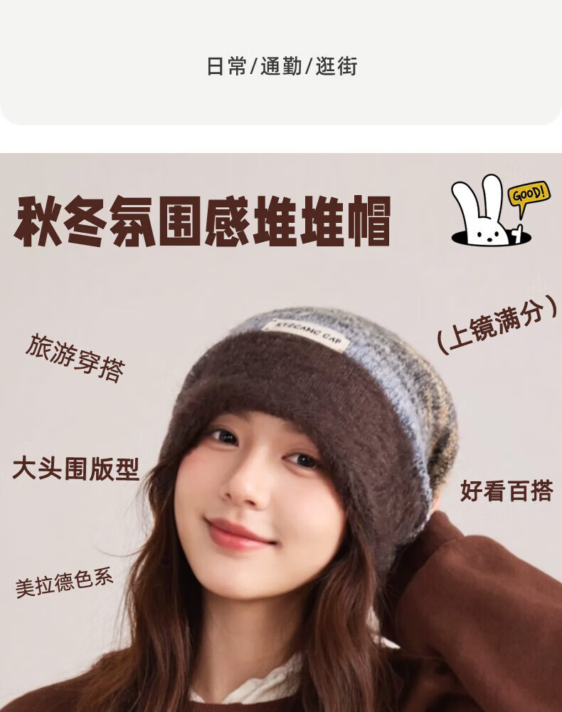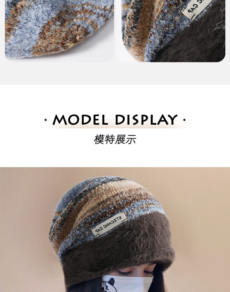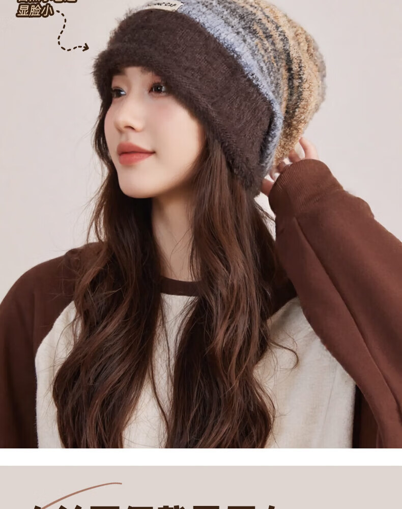RICH YOUR HOME German quality woolen hat knitted pile hat cold hat autumn and winter women's retro plush thick hat winter windproof winter dark brown color one size (suitable for the head circumference)