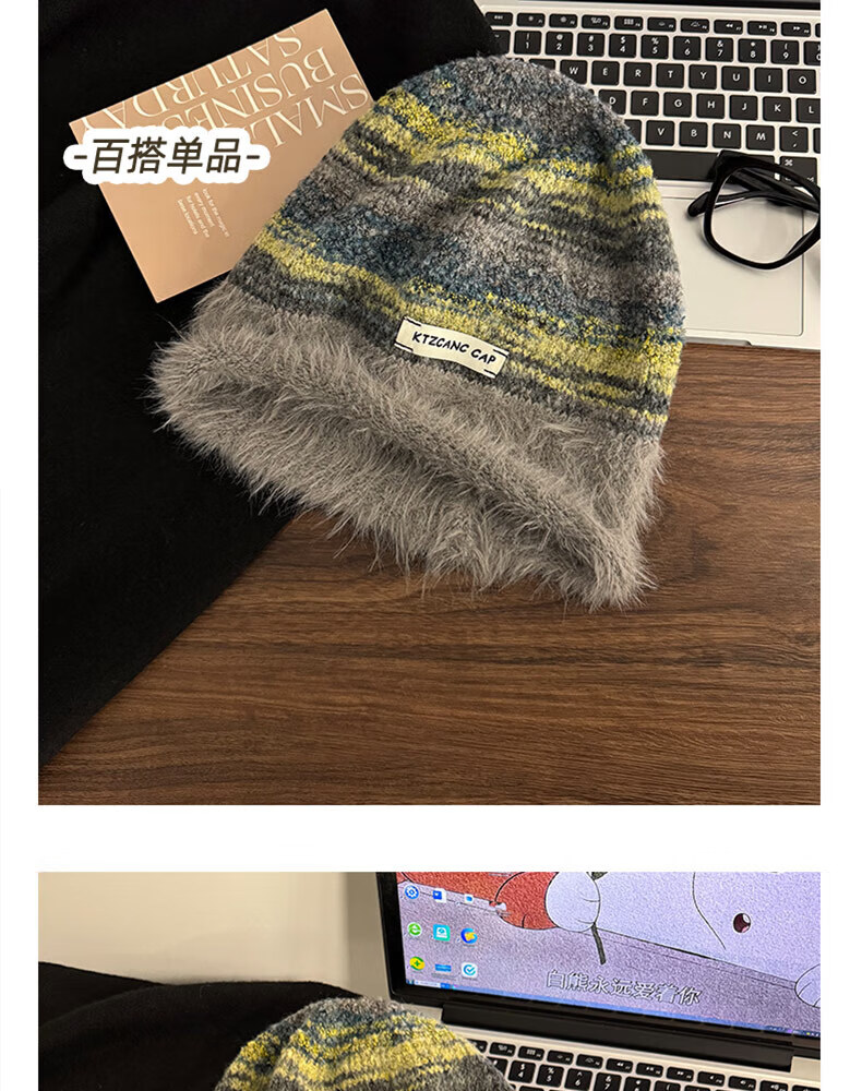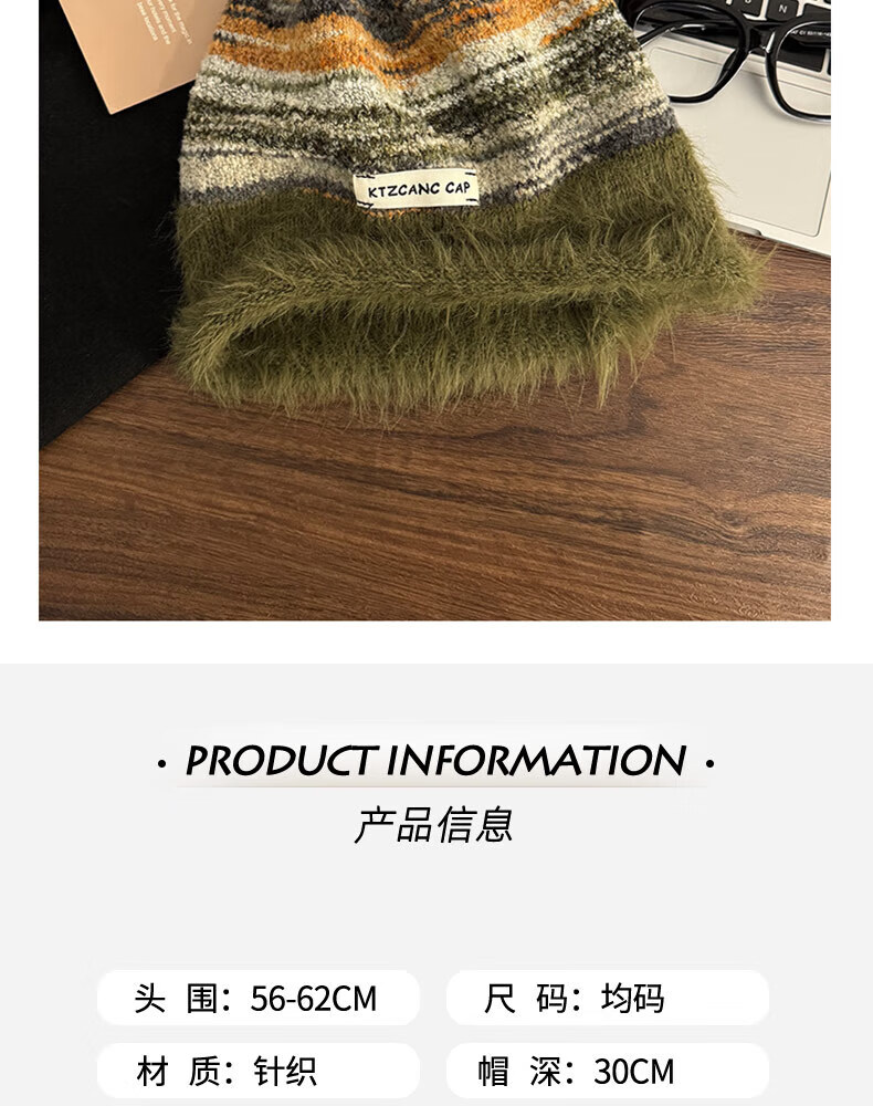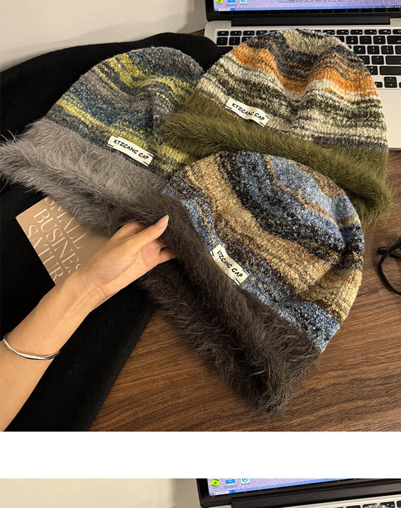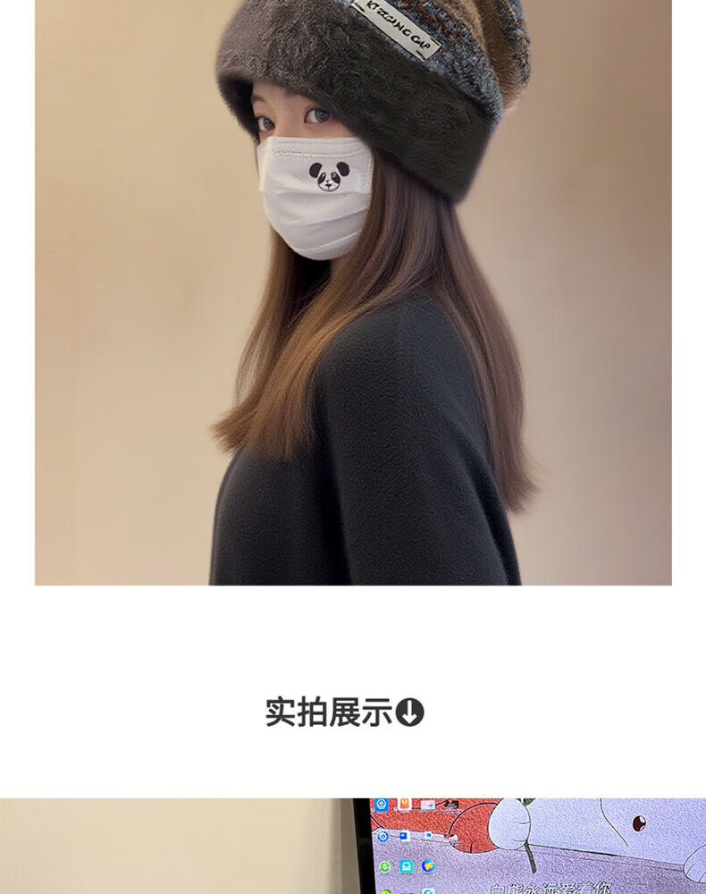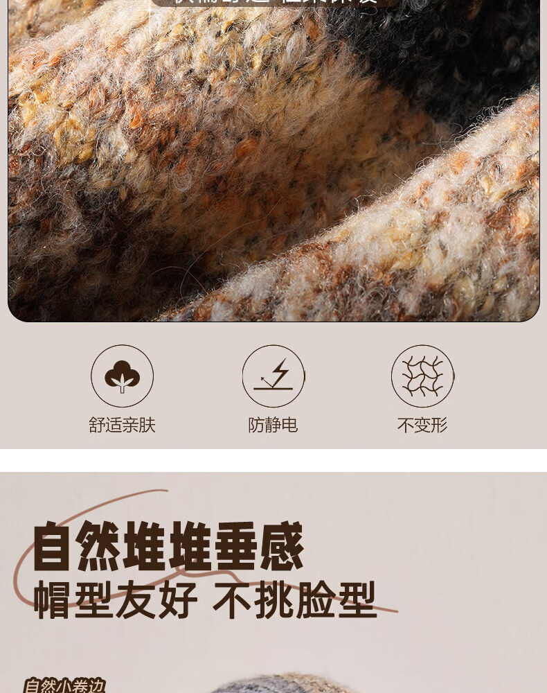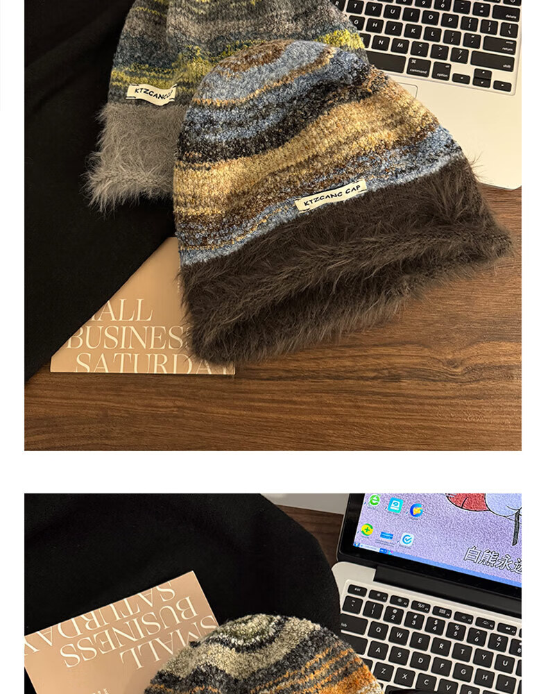 RICH YOUR HOME German quality woolen hat knitted pile hat cold hat autumn and winter women's retro plush thick hat winter windproof winter dark brown color one size (suitable for the head circumference)