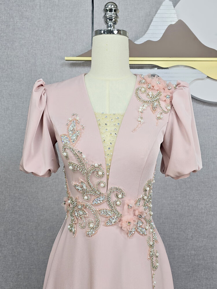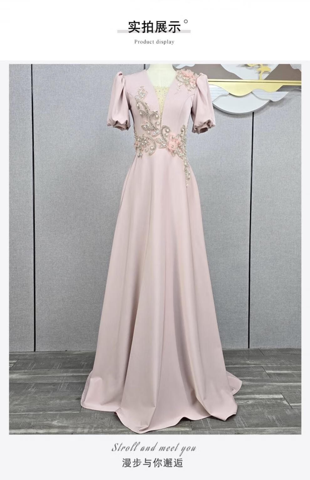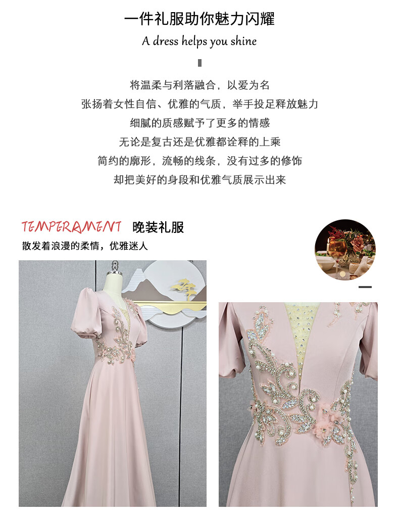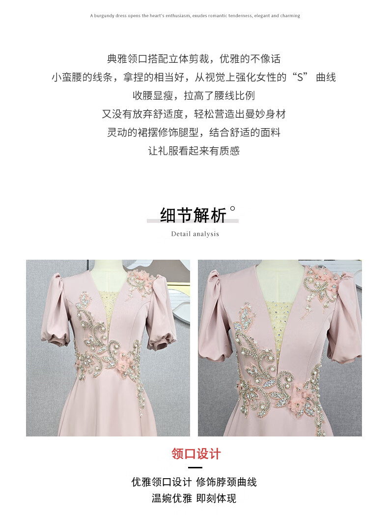 Wenmi ethnic vocal dress host dignified and elegant 2025 new style light luxury niche art test folk song solo performance pink (silver flower) floor style S