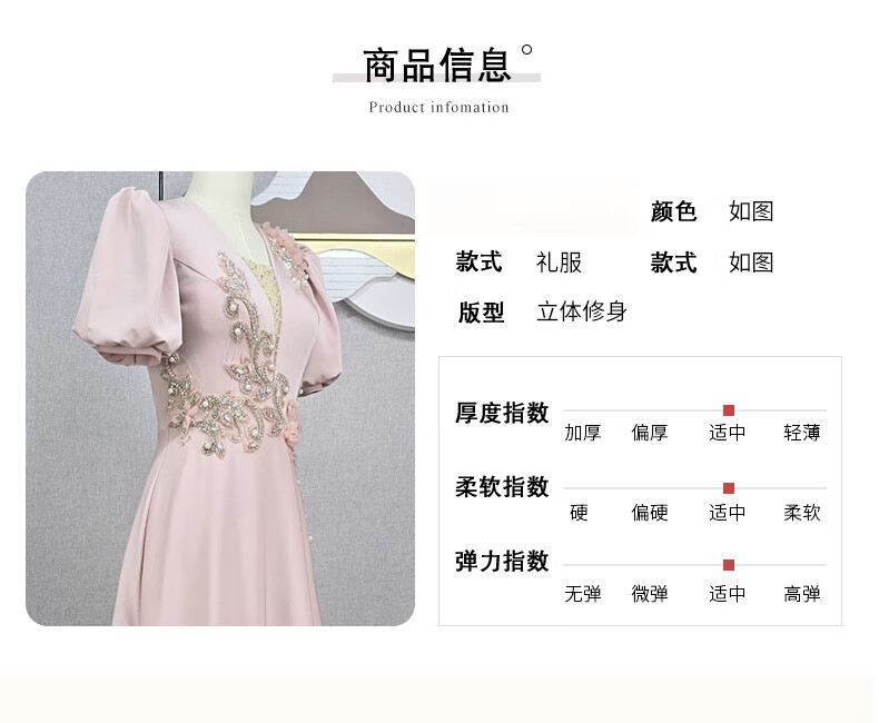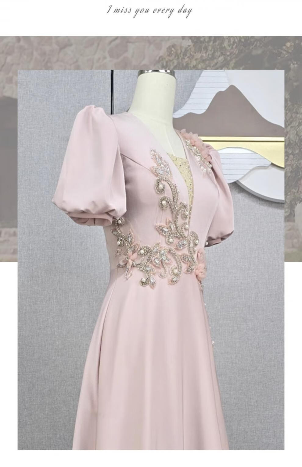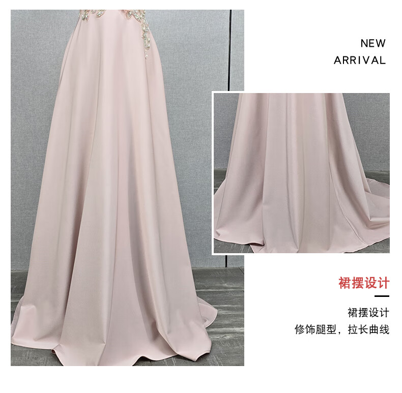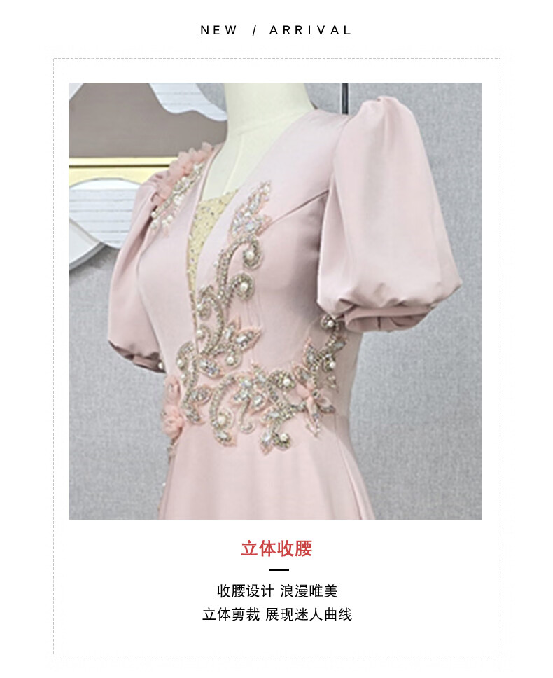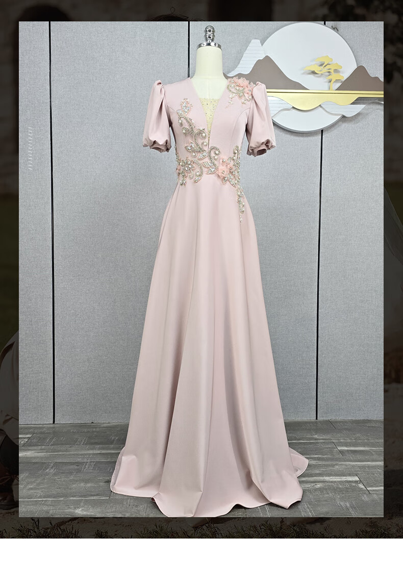Wenmi ethnic vocal dress host dignified and elegant 2025 new style light luxury niche art test folk song solo performance pink (silver flower) floor style S