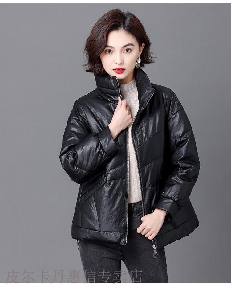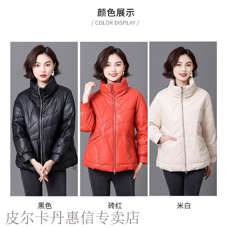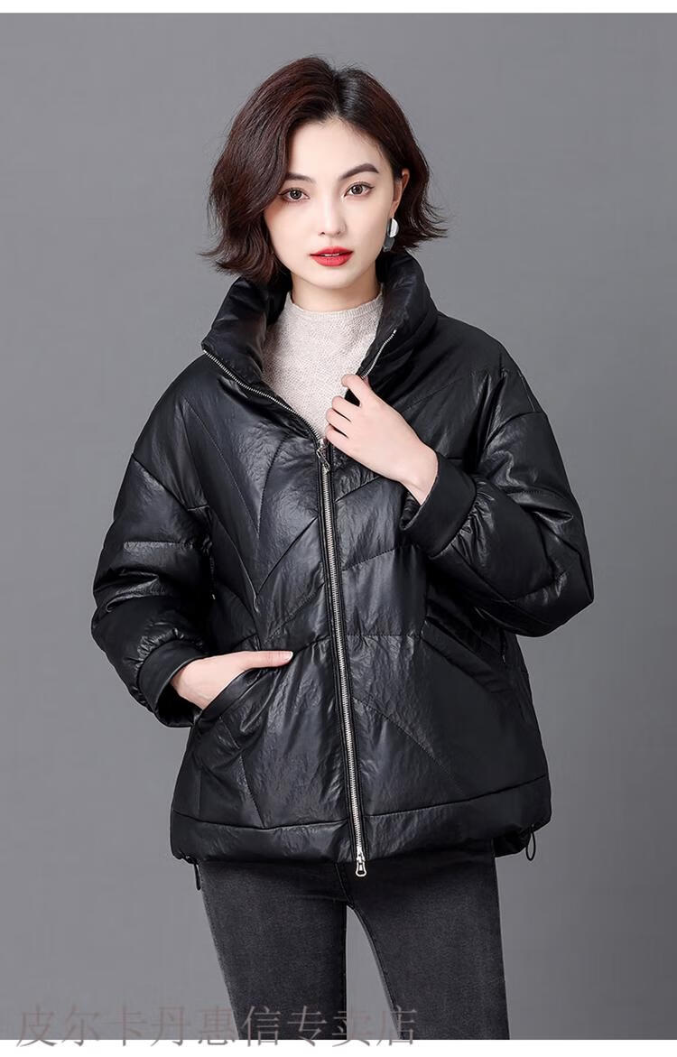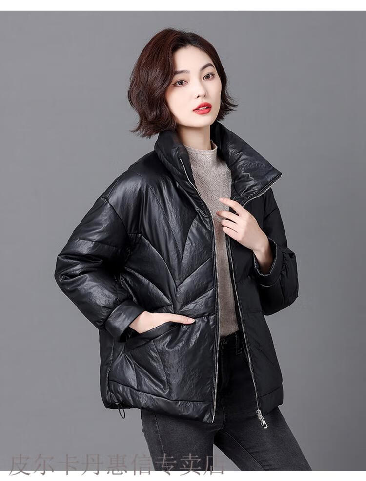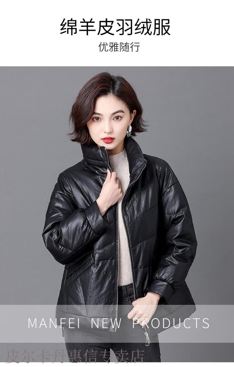 Pierre Cardin 2025 Winter New Sheep Leather Down Jacket Women's Short Slim Haining Leather Loose Fur Jacket Thick Black 2XL Recommended 130~140Jin Jin equals 0.5 kg
