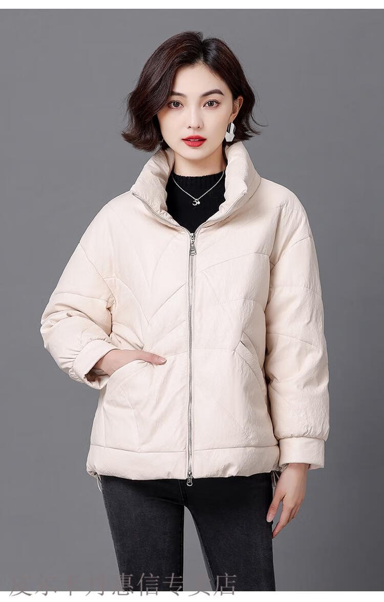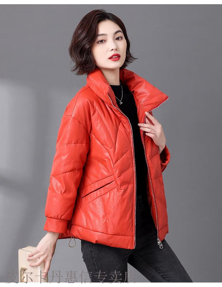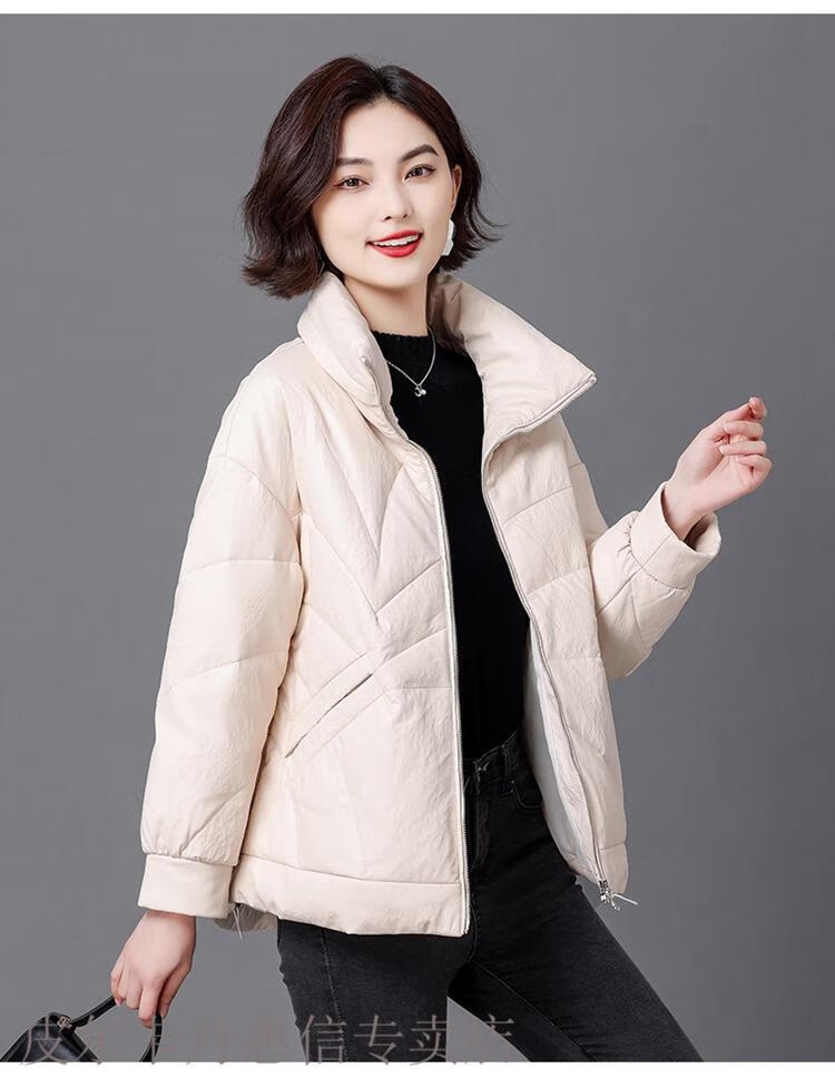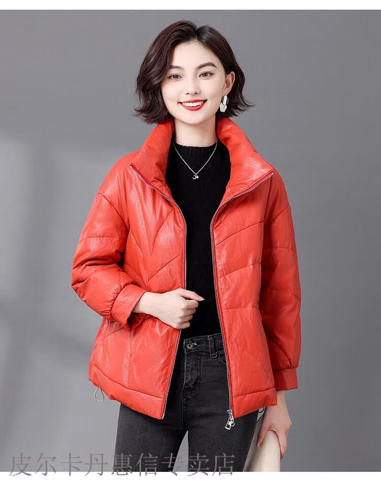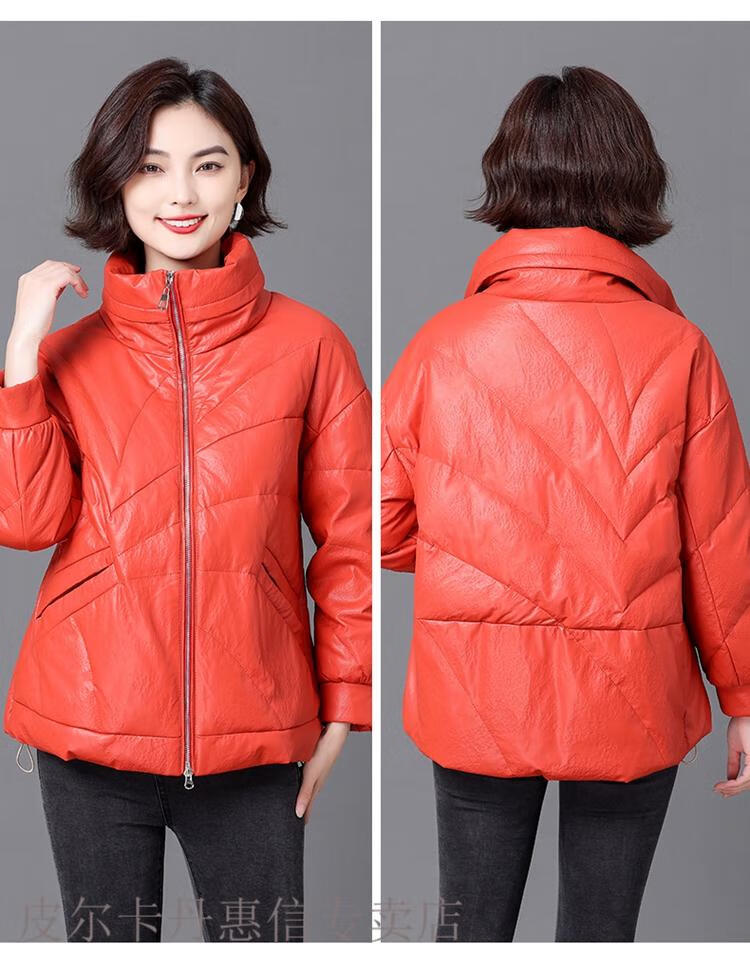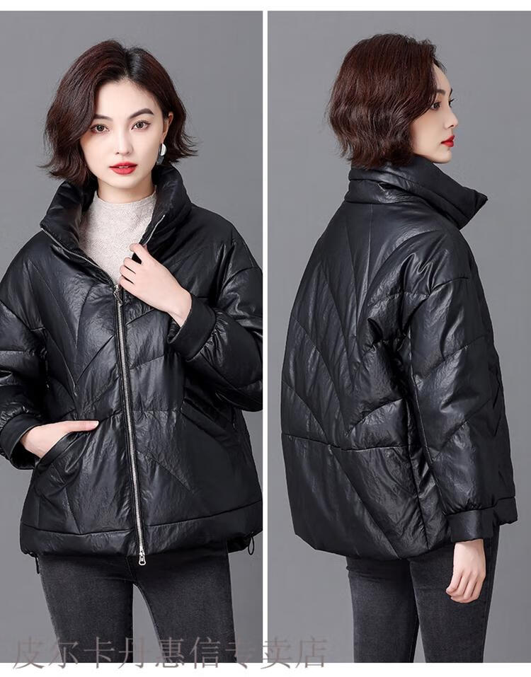 Pierre Cardin 2025 Winter New Sheep Leather Down Jacket Women's Short Slim Haining Leather Loose Fur Jacket Thick Black 2XL Recommended 130~140Jin Jin equals 0.5 kg