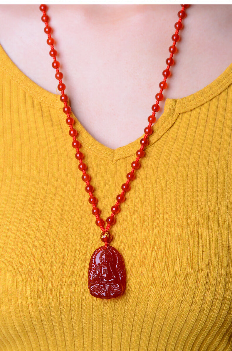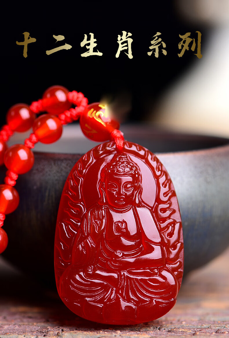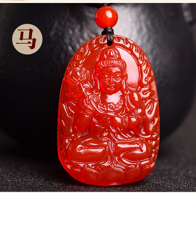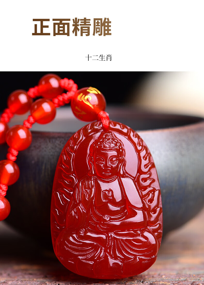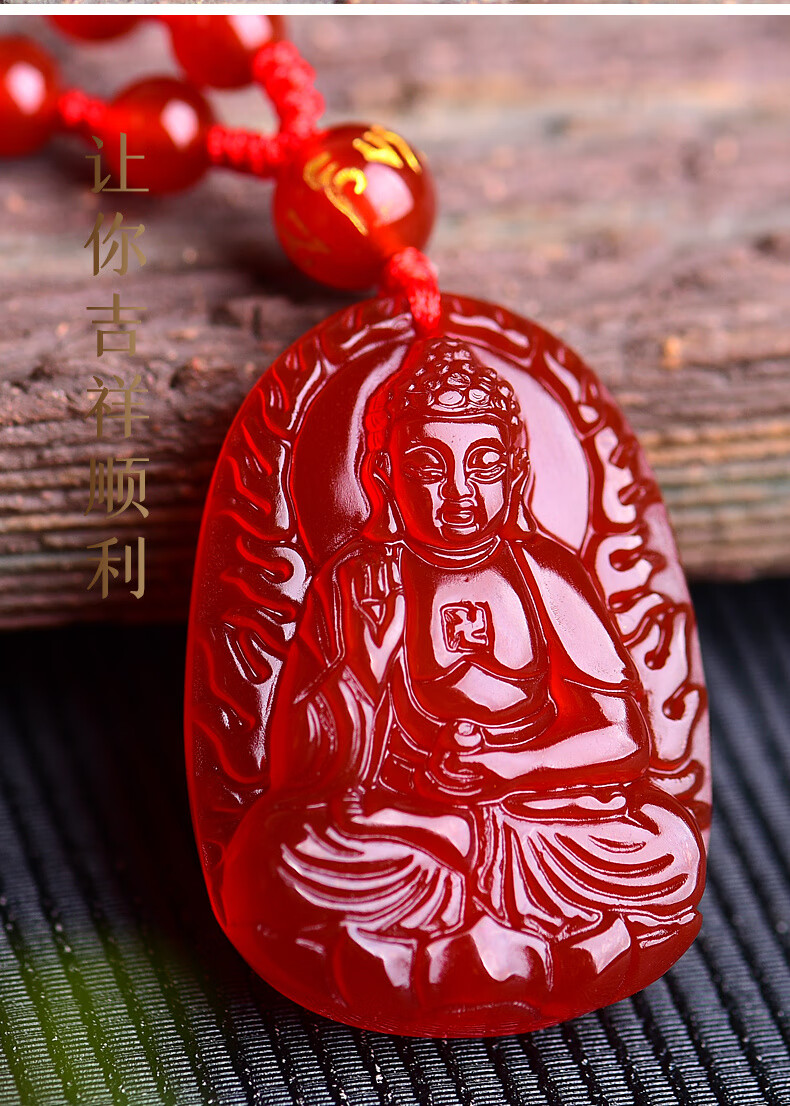 MARDOTG red agate zodiac Buddha pendant, twelve zodiac signs for men and women, zodiac year guardian amulet necklace, holiday gift, horse, great trend - with bead chain