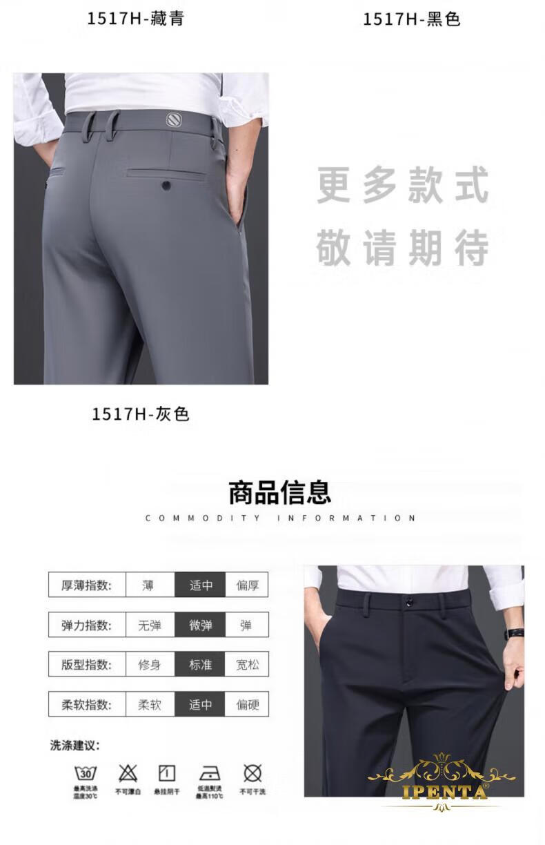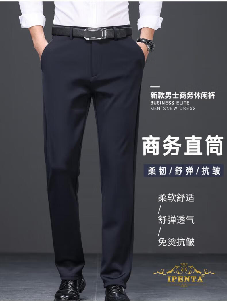 Ipenta luxury high-end brand trousers for men autumn business formal casual trousers new comfortable and versatile straight trousers navy blue-high-end gift box 28