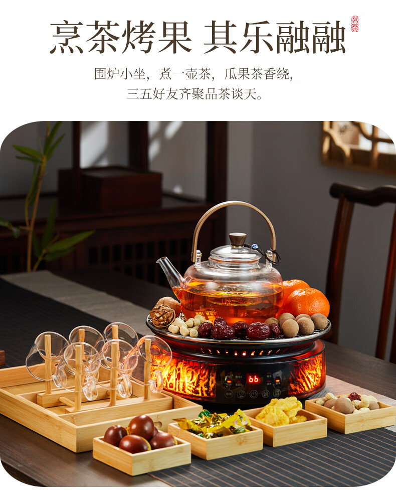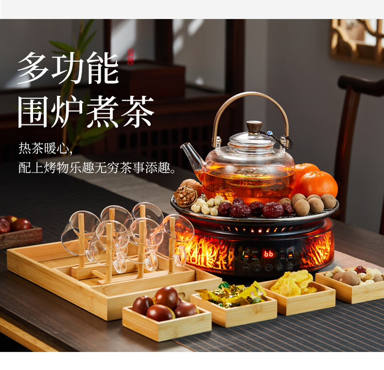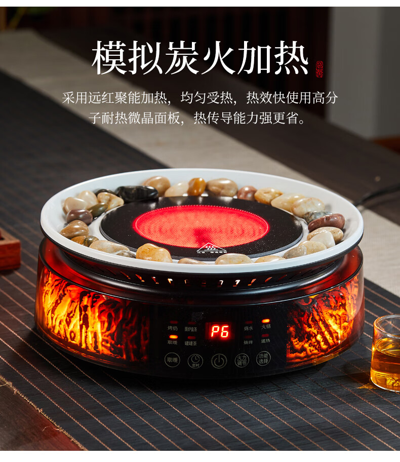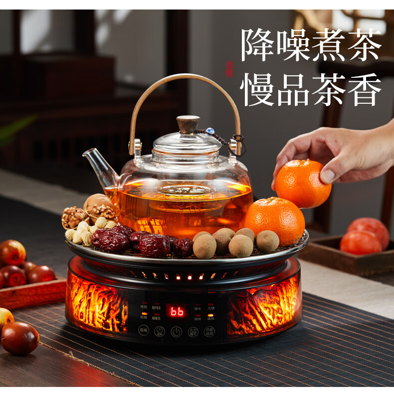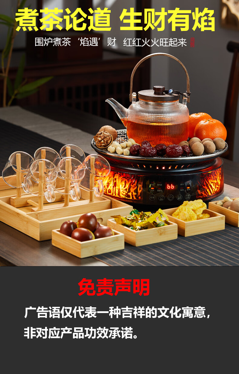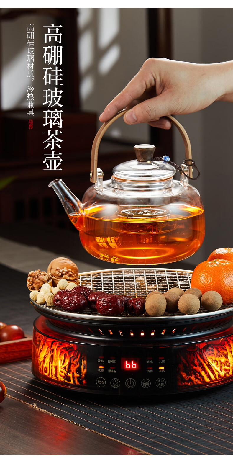 Gaoming (gaoming) 2025 new model of simulated fireworks around the stove tea making set full set of high-end atmospheric electric ceramic stove making tea kettle with grilling net set plain shadow pot + campfire stove