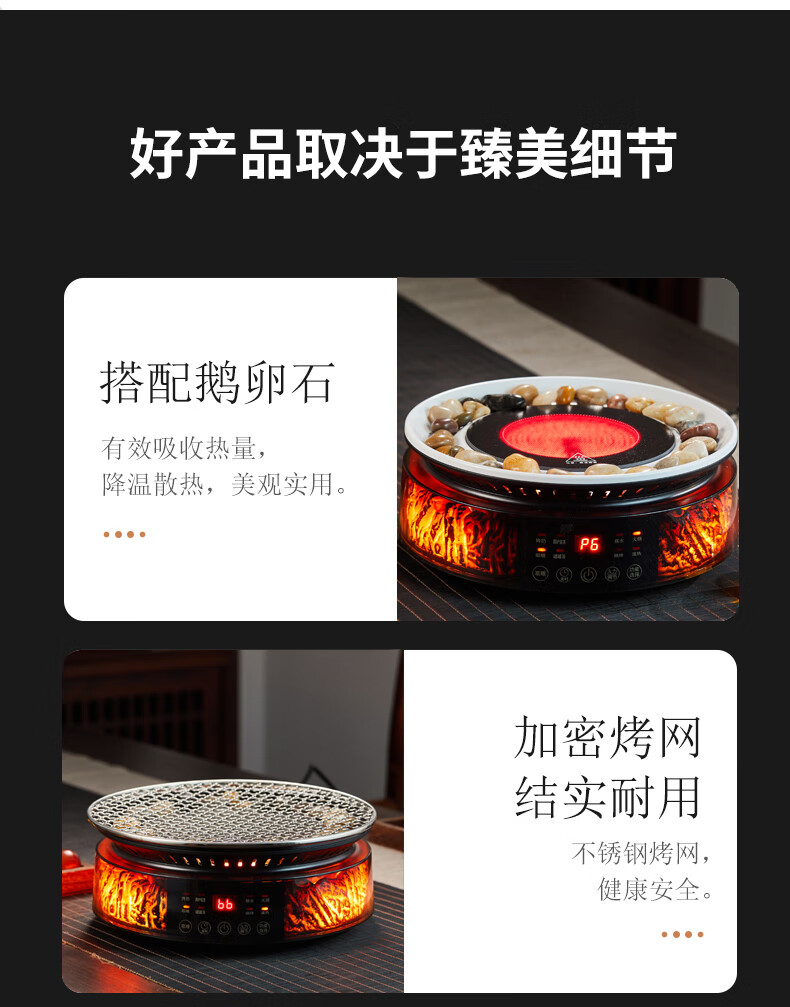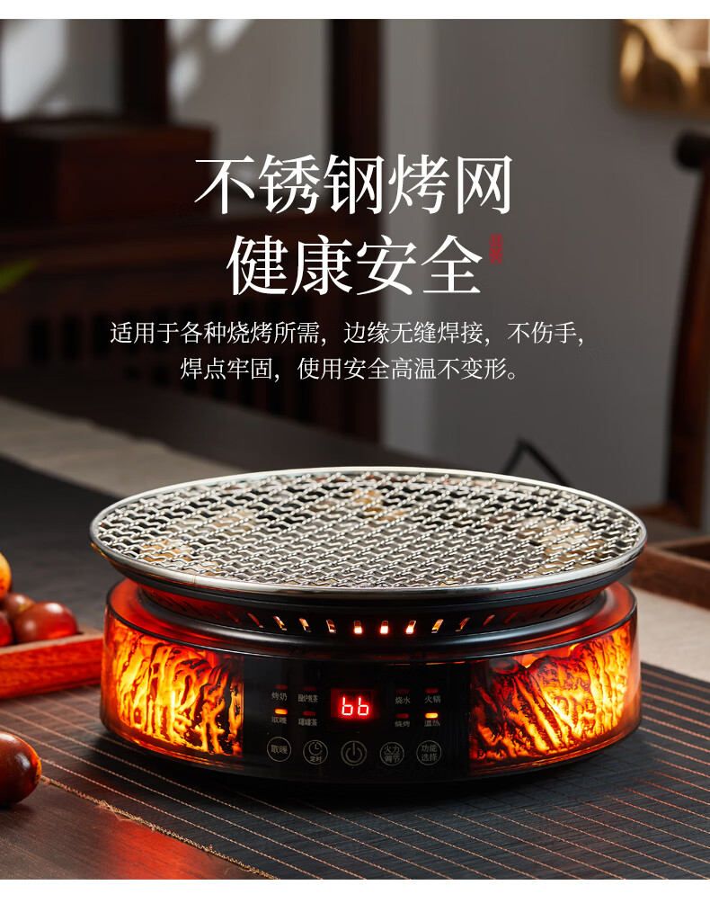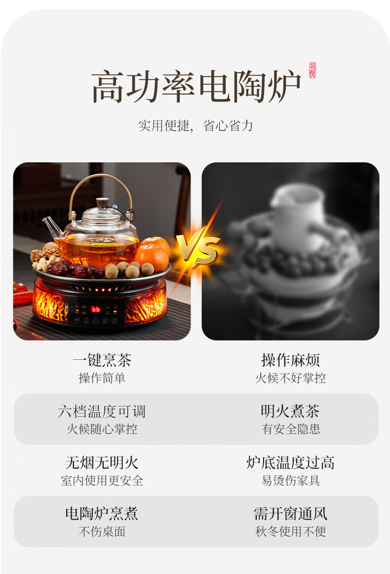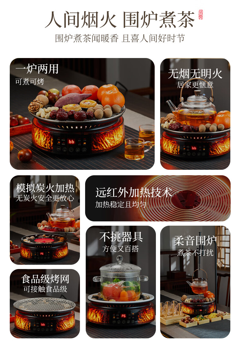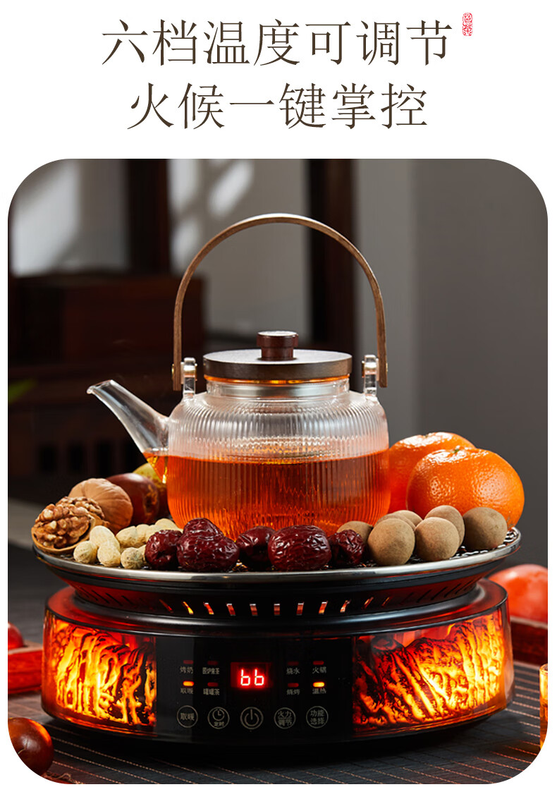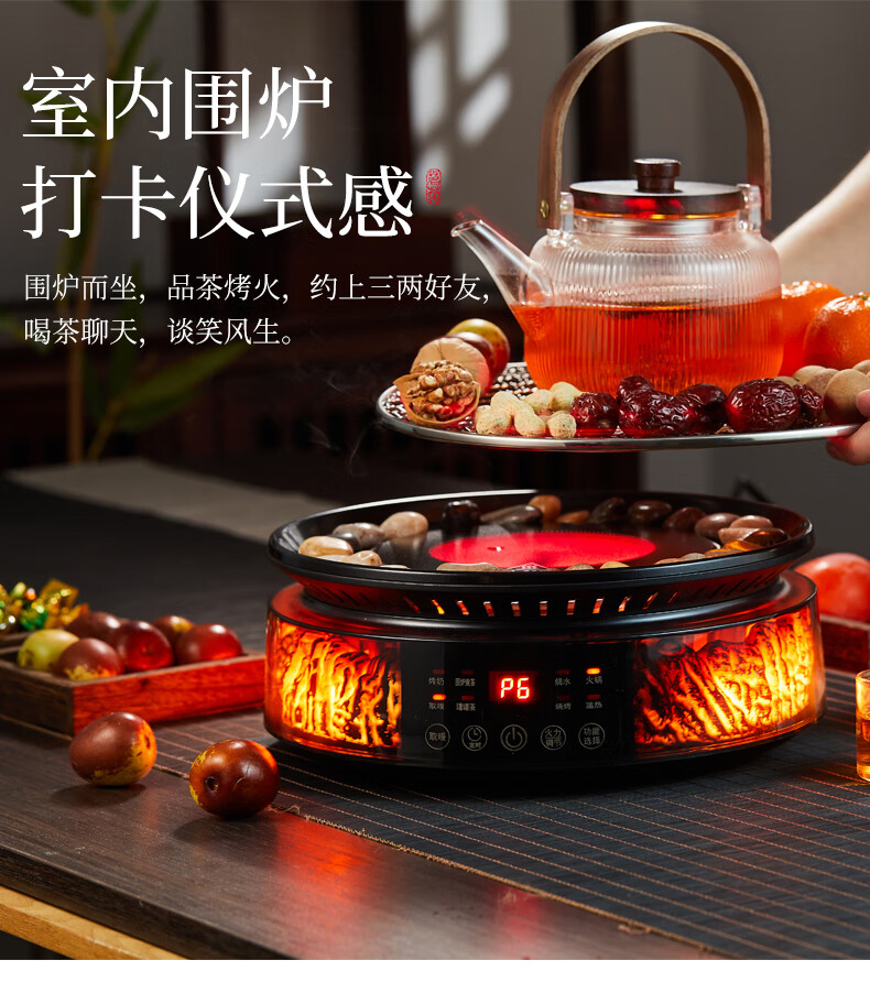 Gaoming (gaoming) 2025 new model of simulated fireworks around the stove tea making set full set of high-end atmospheric electric ceramic stove making tea kettle with grilling net set plain shadow pot + campfire stove