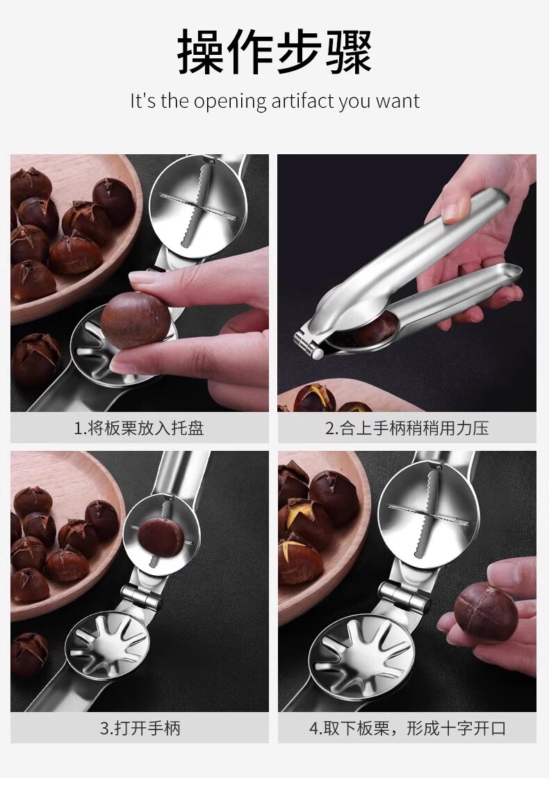 Raw chestnut opener recommended by Yangma Fully automatic chestnut opening and automatic rebound stainless steel cross cutter 1 pack Easy and labor-saving 丨 Durable