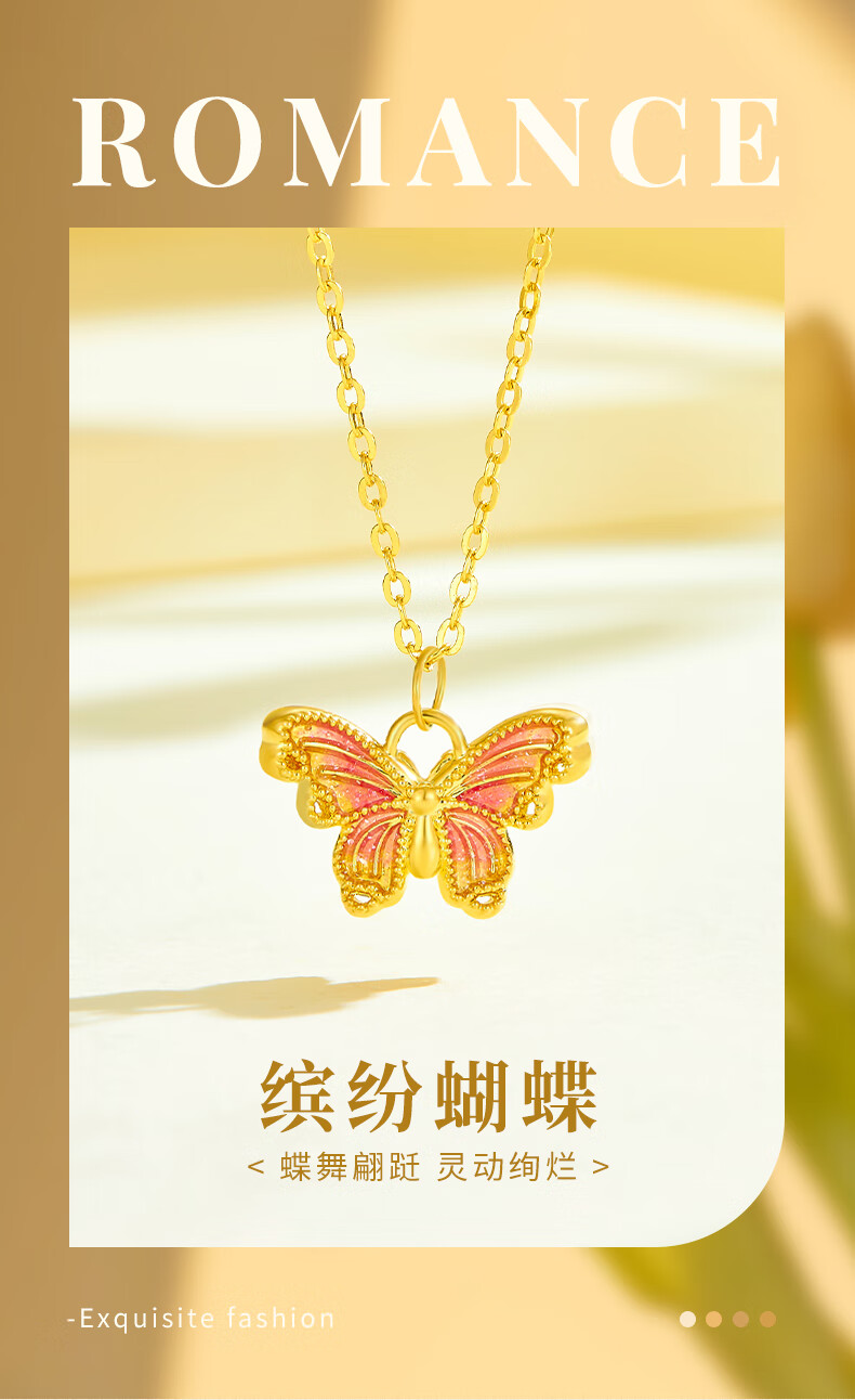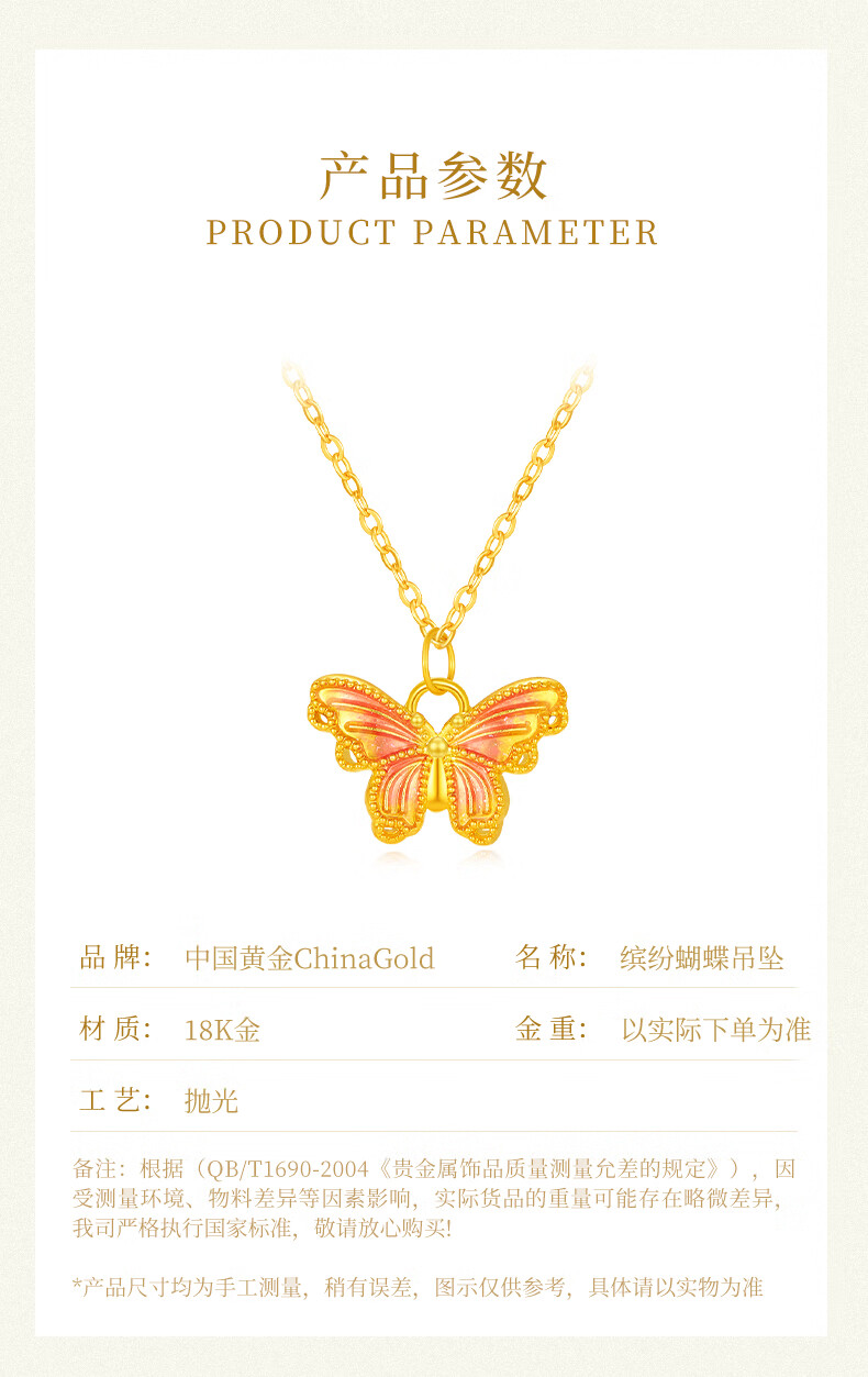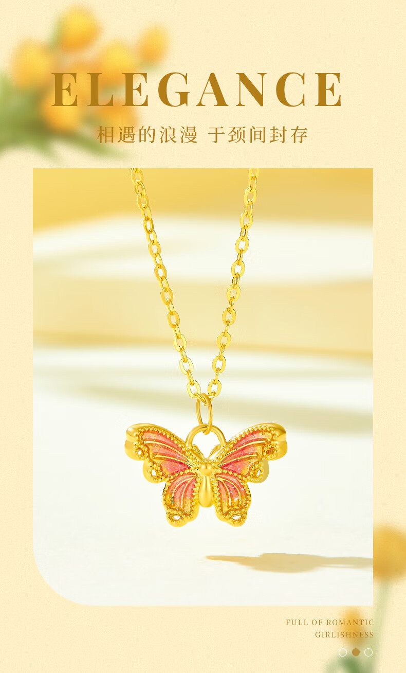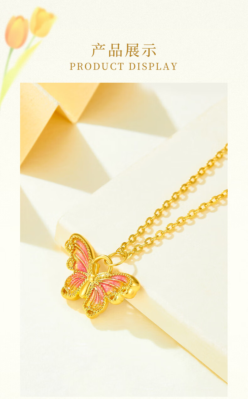 CHINA GOLD 18K gold butterfly pendant for women, new enamel necklace, clavicle chain, birthday Double 11 gift for girlfriend on anniversary, 18K gold butterfly pendant, free sterling silver chain - about 0.25g