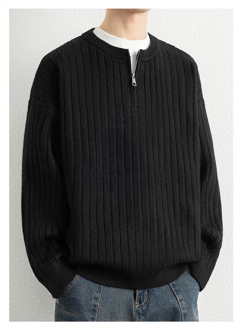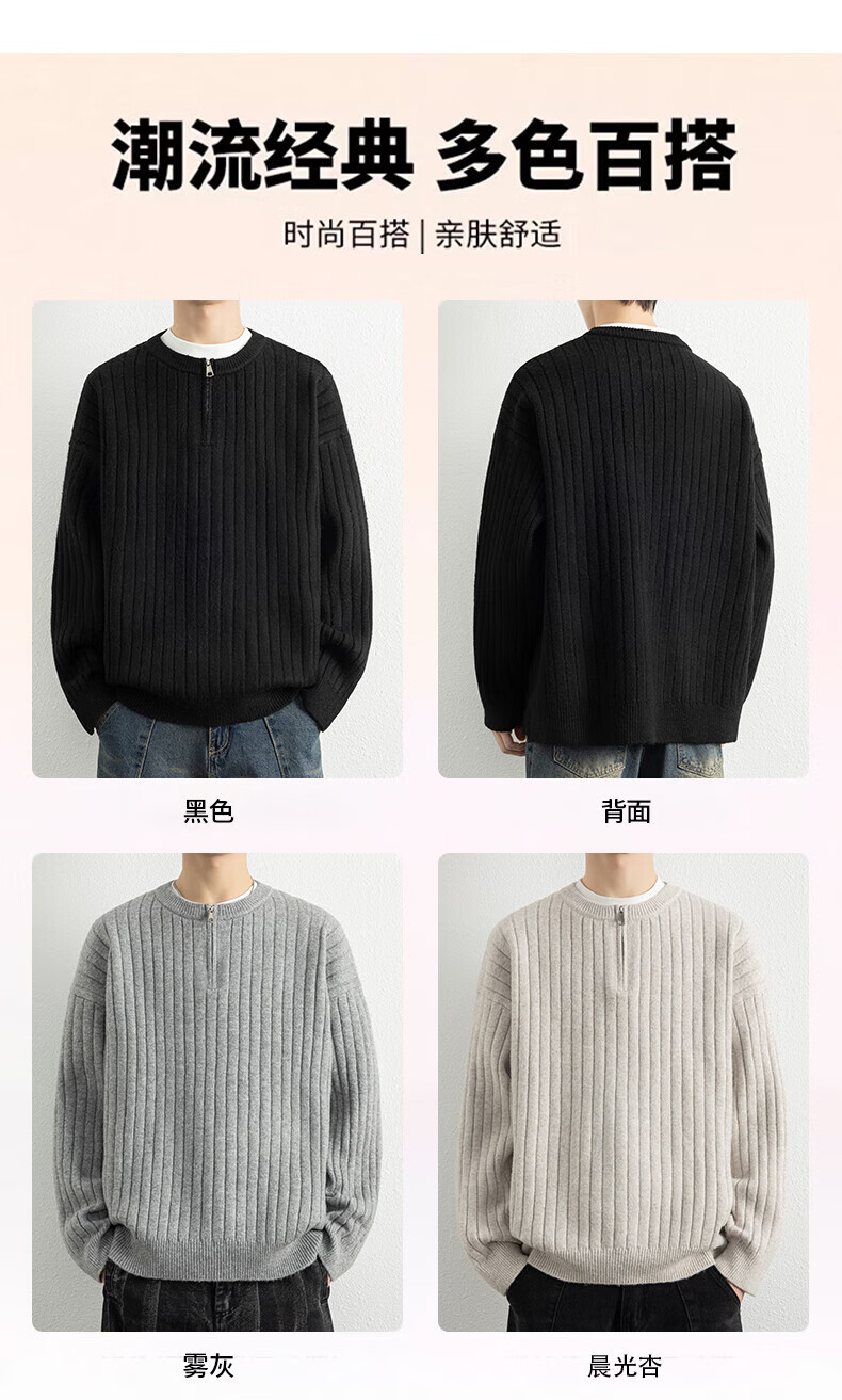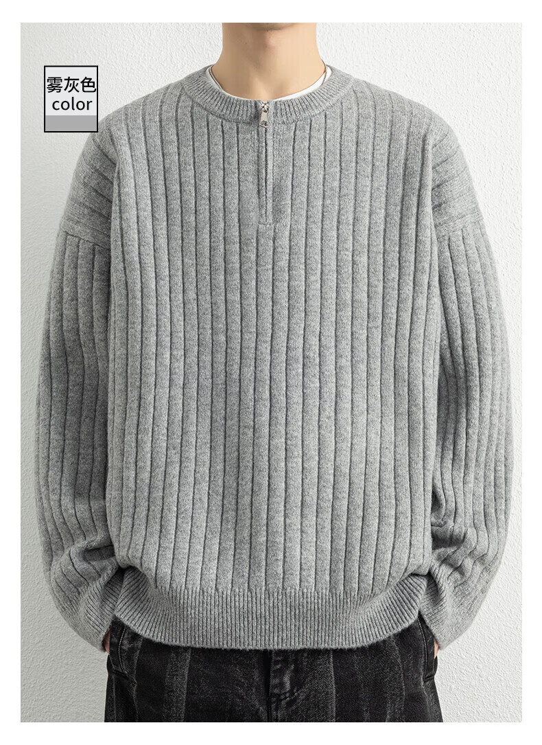 Jiangong Half Zip Sweater Men's Autumn and Winter 2025 New Style Henley Collar Wool Sweater Vertical Pit Stripe Sweater Men's Chenguang Xing M About 100-120 Jin Jin equals 0.5 kg Can be worn