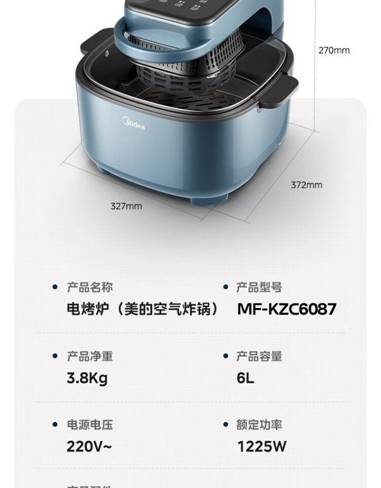 Hualingmei's visual air fryer household 2025 new large-capacity multi-function clamshell oven machine KZC6087 0 inch 0L