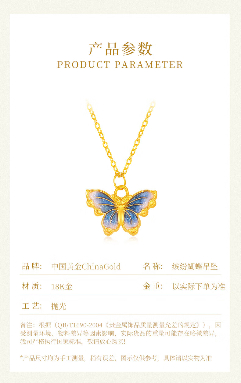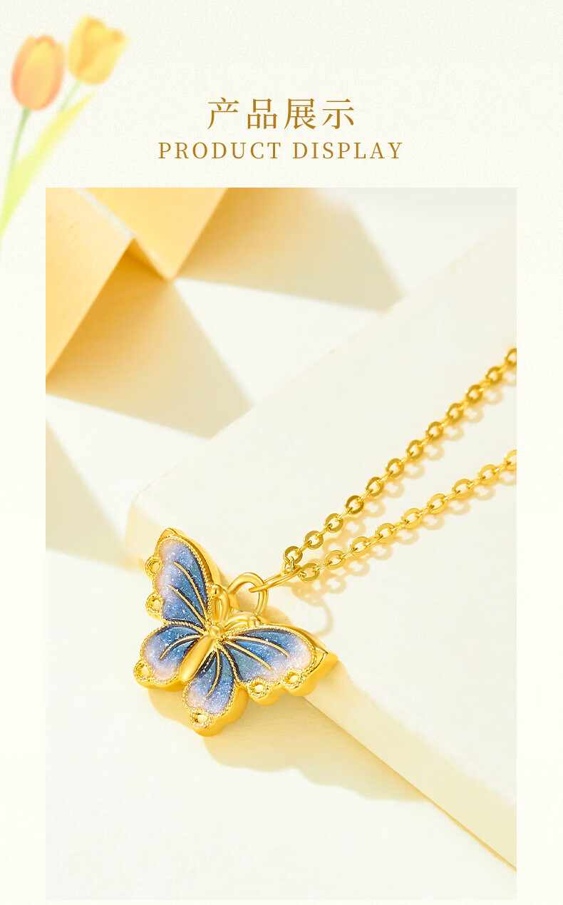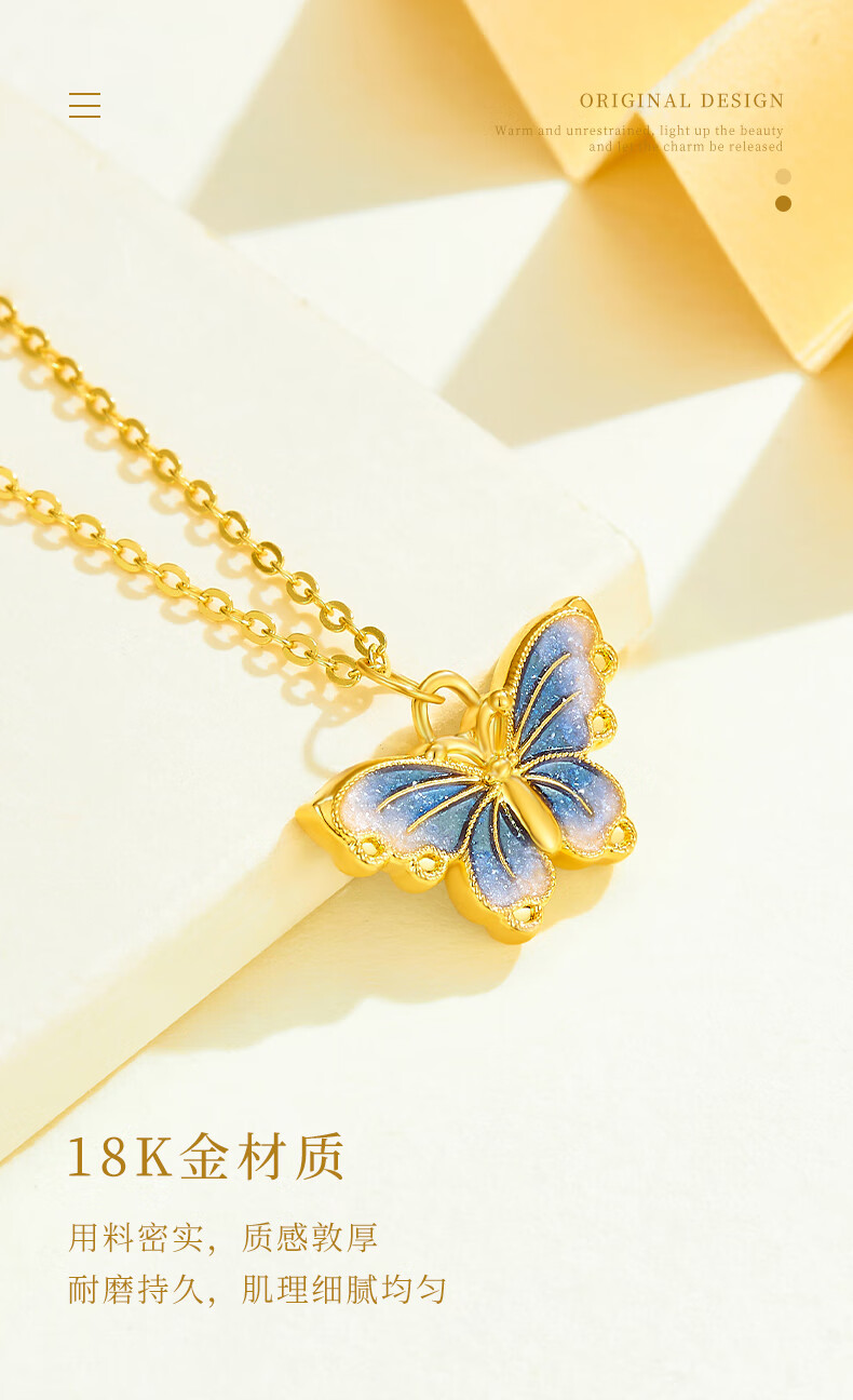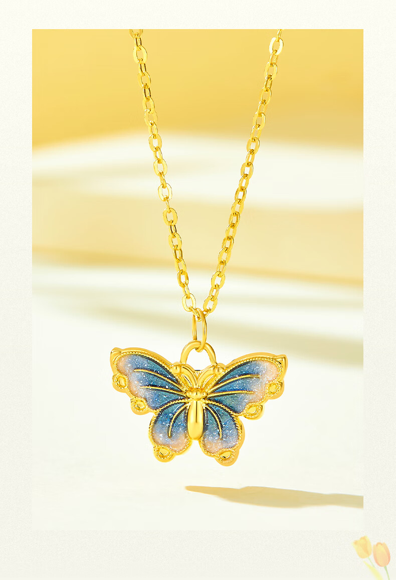 CHINA GOLD 18K gold colorful enamel butterfly pendant women's clavicle necklace birthday Double 11 gift for girlfriend on anniversary 18K gold enamel butterfly pendant free sterling silver chain - about 0.3g