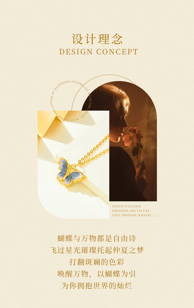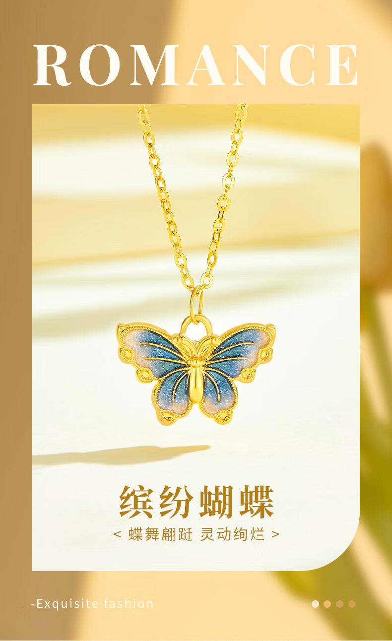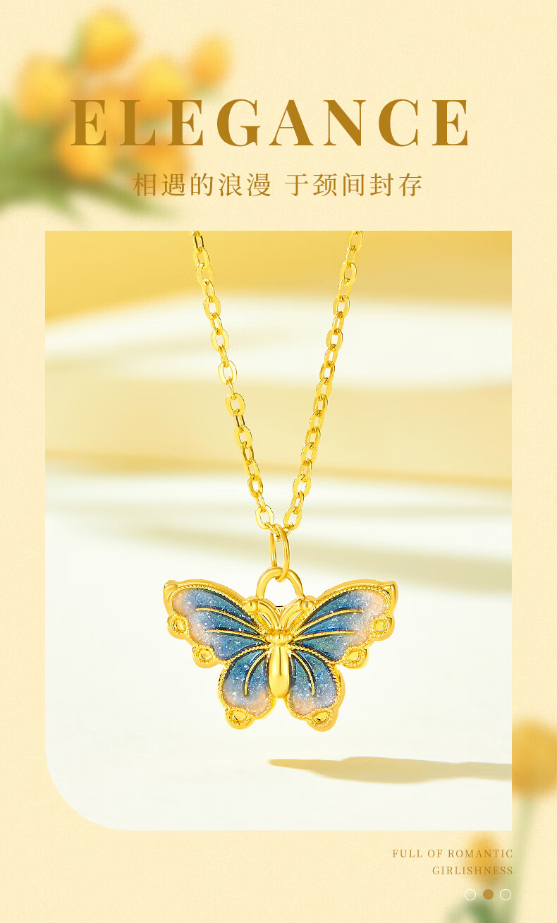 CHINA GOLD 18K gold colorful enamel butterfly pendant women's clavicle necklace birthday Double 11 gift for girlfriend on anniversary 18K gold enamel butterfly pendant free sterling silver chain - about 0.3g