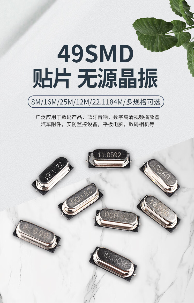 8M11.0592M12M13.56M16M22.118M24/25M SMD 49SMD type passive crystal oscillator crystal 16M SMD crystal oscillator (10 pieces) No Specifications
