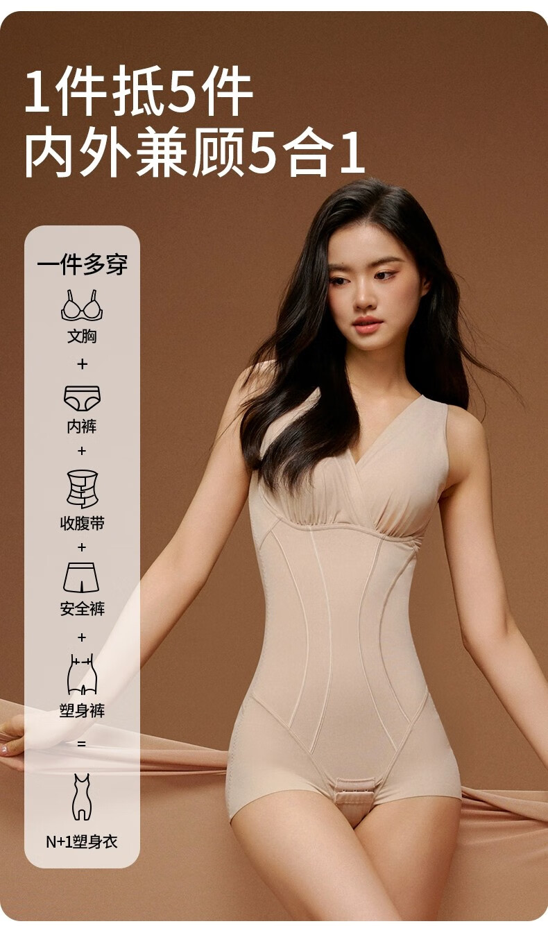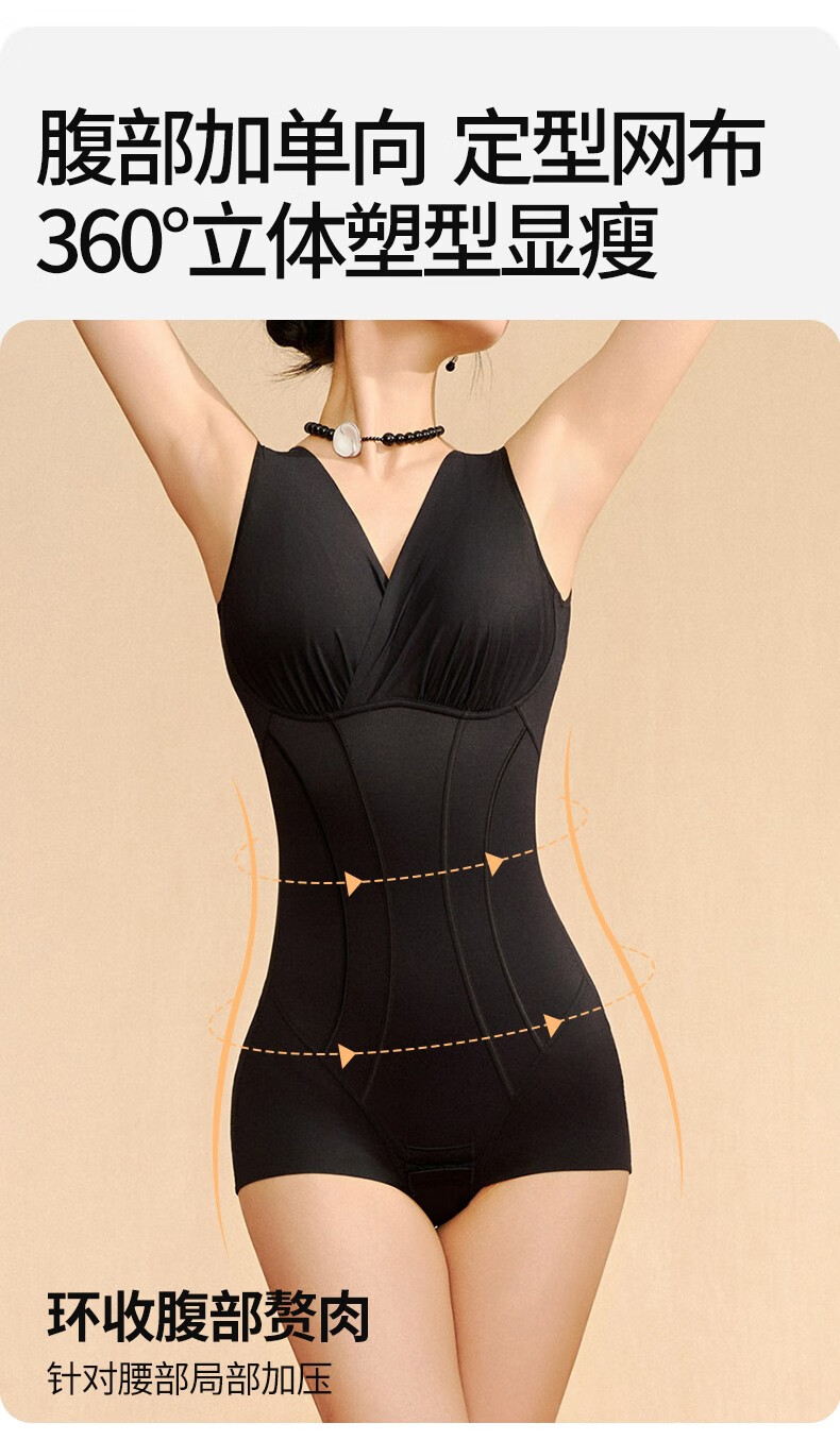 Tingmei One-piece Body Shaping Clothes Women's Shaping Clothes Tight Belly Tight Waist Control Belly Free Bra Body Slimming Clothes Black 3XL (Recommended weight 135-150 Jin Jin equals 0.5 kg)