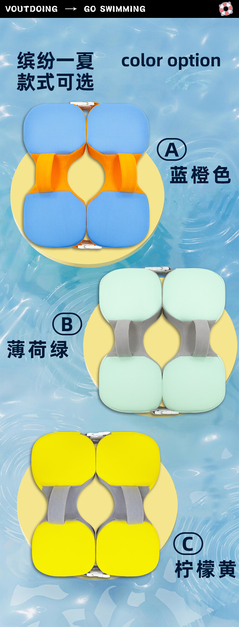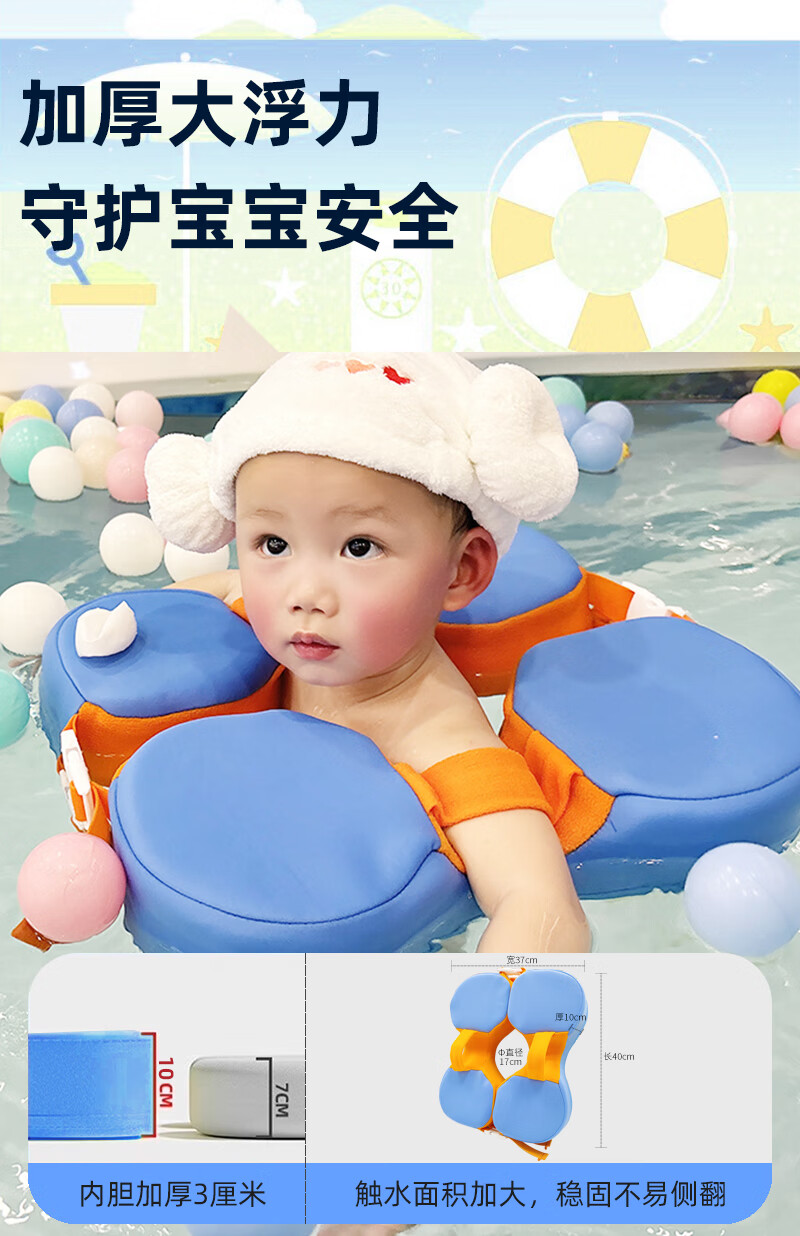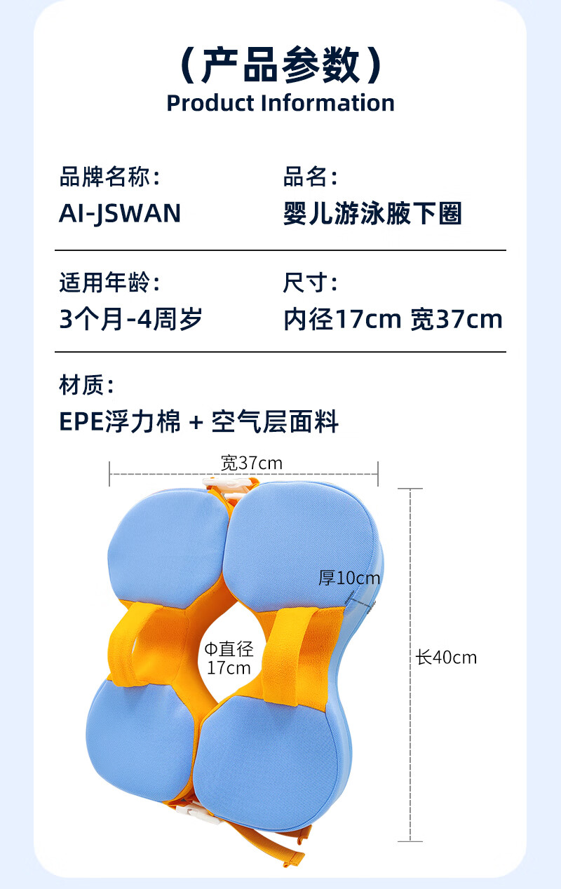 AI-JSWAN children's baby swimming ring armpit ring children's swimming ring anti-rollover beginner baby life vest swimming ring tender green one size