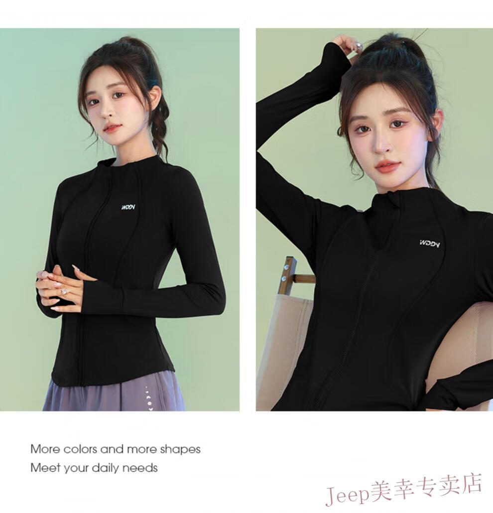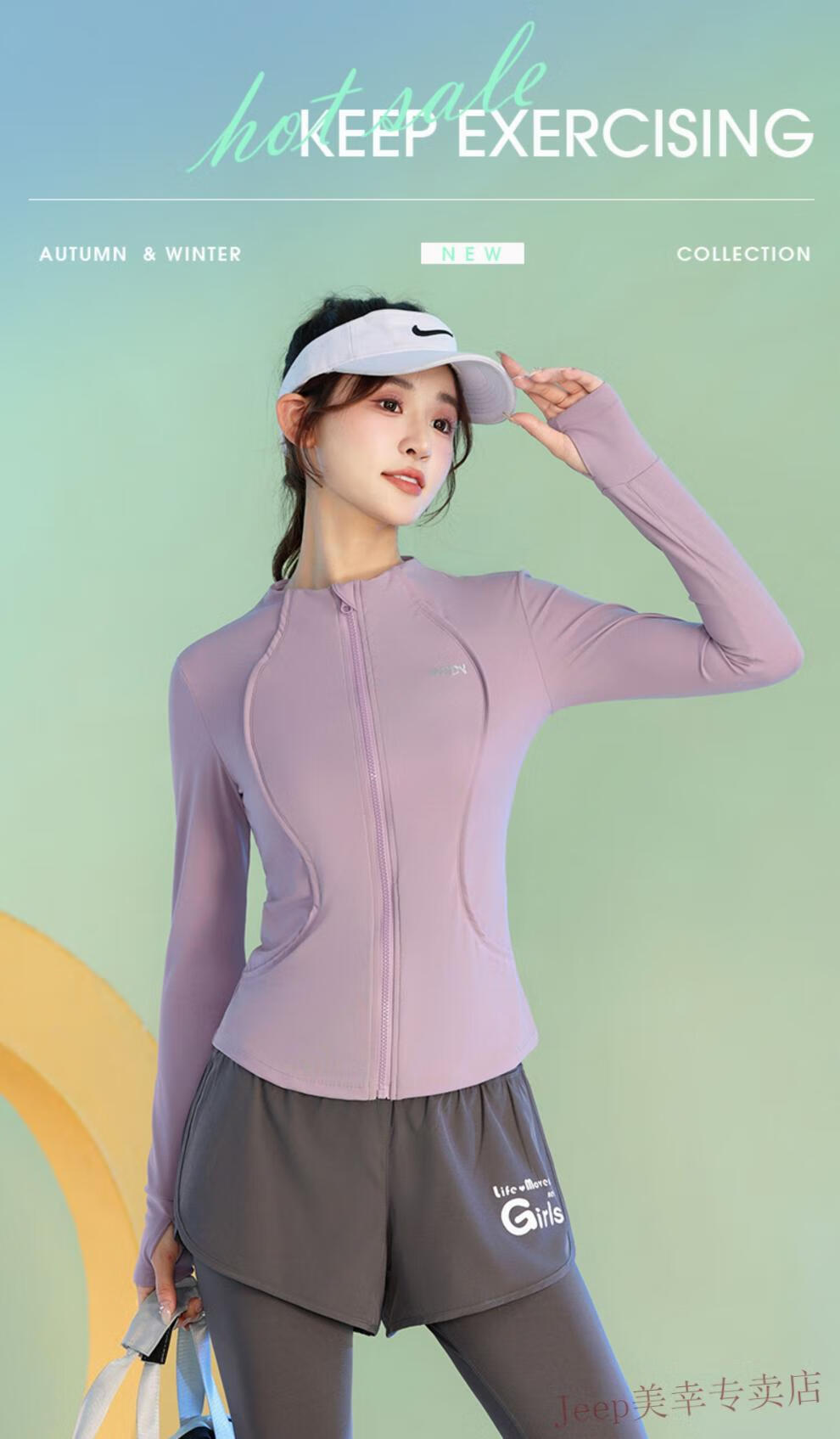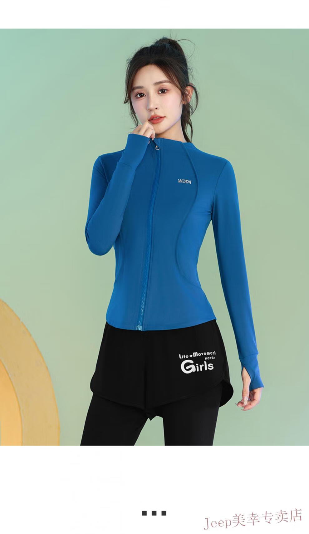 JEEP SPIRIT Outdoor Cycling Clothing Women's Autumn and Winter Gym Sports Jacket Yoga Wear Cardigan Zipper Quick-Dry Top Velvet Blue Jacket S