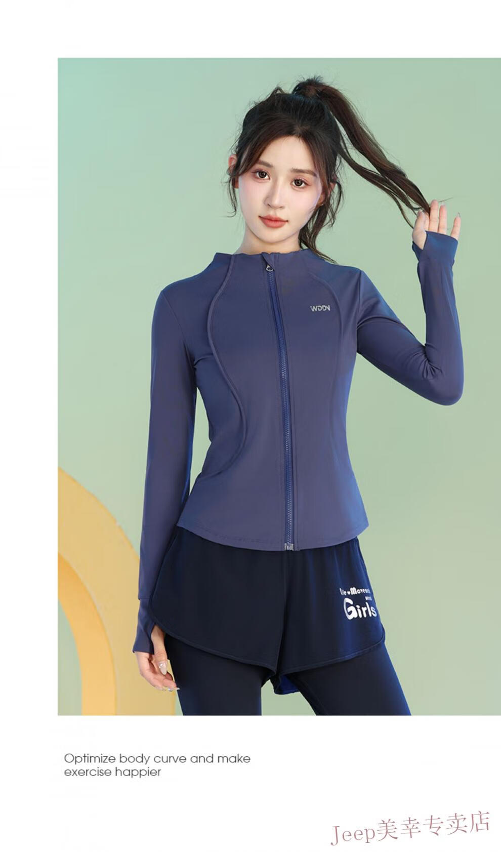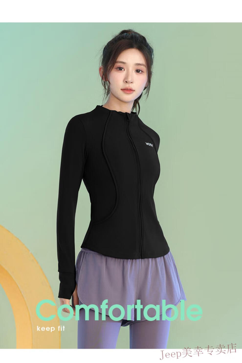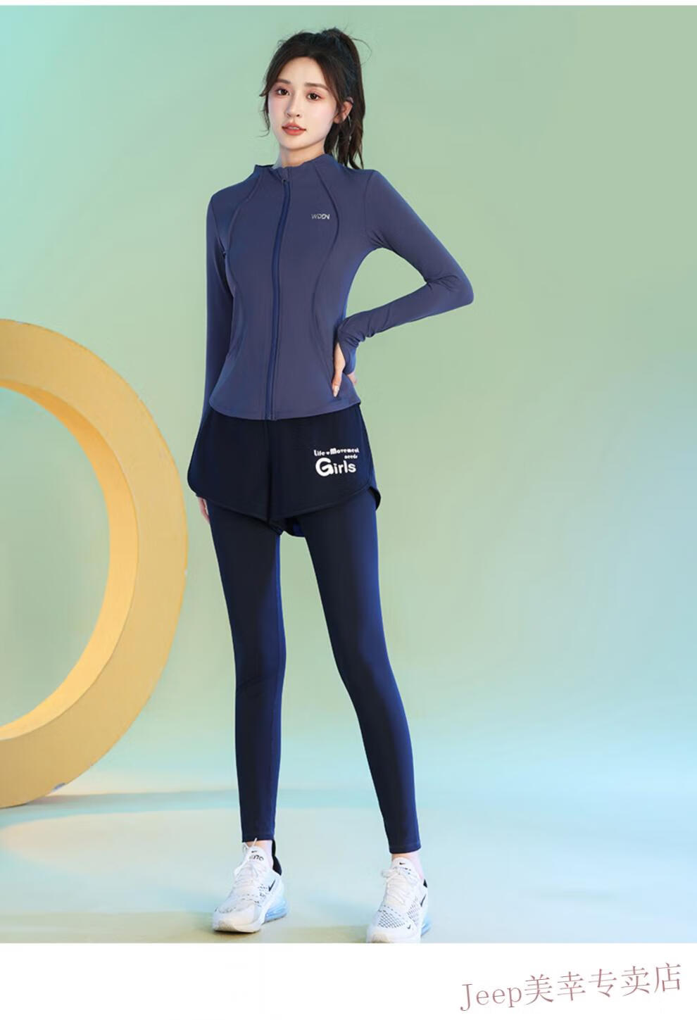 JEEP SPIRIT Outdoor Cycling Clothing Women's Autumn and Winter Gym Sports Jacket Yoga Wear Cardigan Zipper Quick-Dry Top Velvet Blue Jacket S