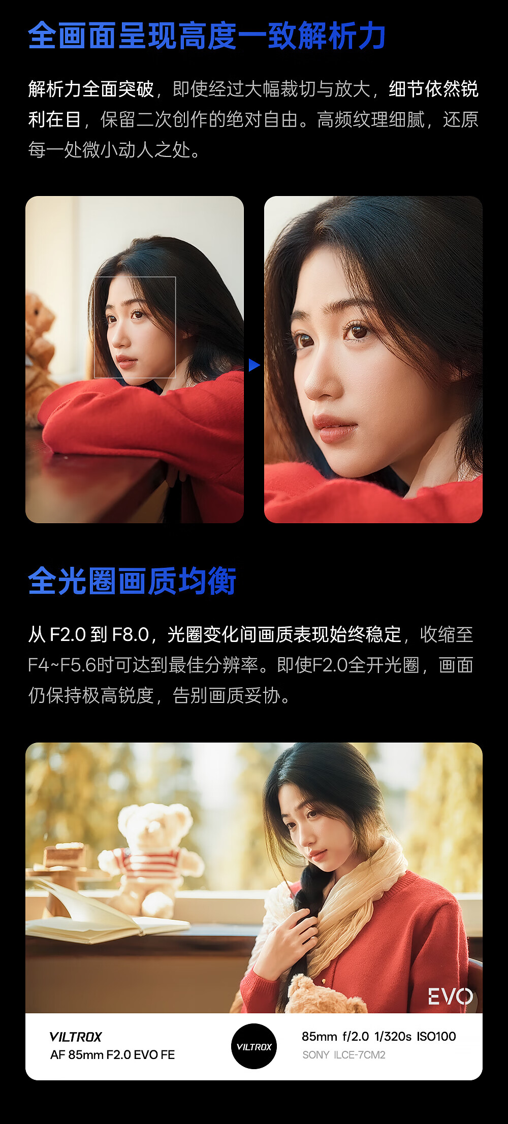 Viltrox 85mm F2.0 EVO full-frame large aperture mid-telephoto fixed-focus autofocus lens suitable for Z mount FE mount mirrorless camera portrait photography fixed focus lens AF 85mm F2.0 EVO Z (Nikon port) official standard