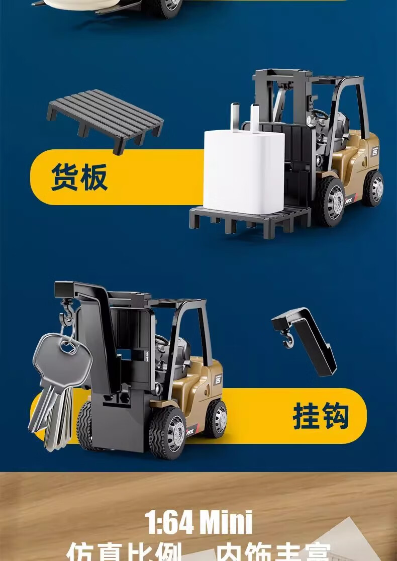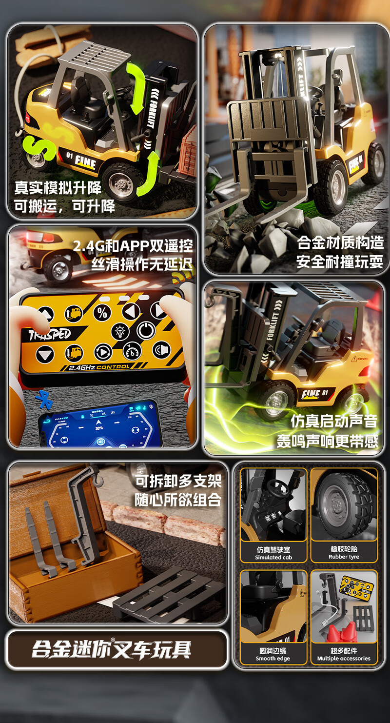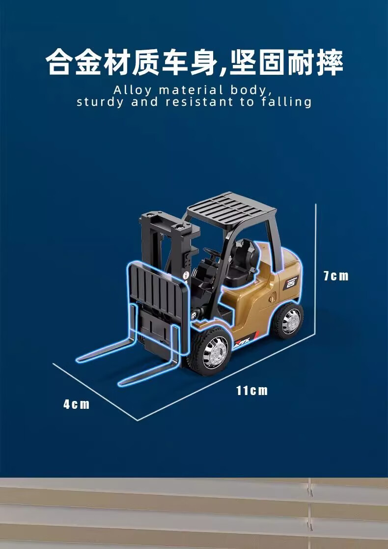 Mini alloy remote control forklift desktop lifting cargo rc engineering small car children and boys stacker toys chassis lighting card remote control 8cm small forklift lifting fork_3 gears Bluetooth APP + mini remote control 30 minutes of battery life + USB charging cable