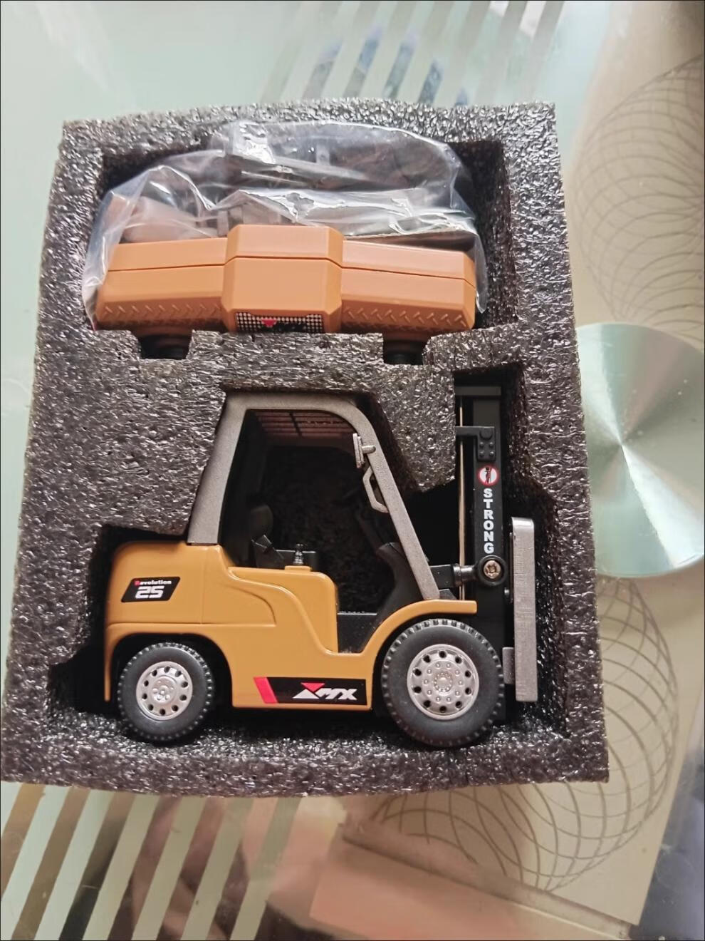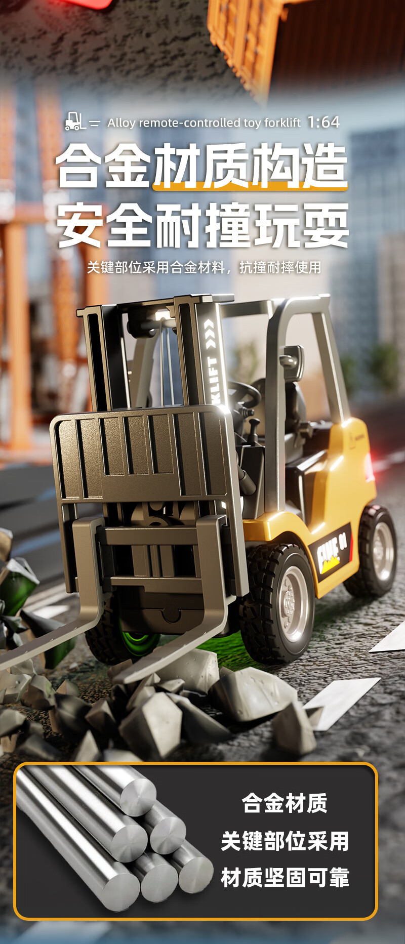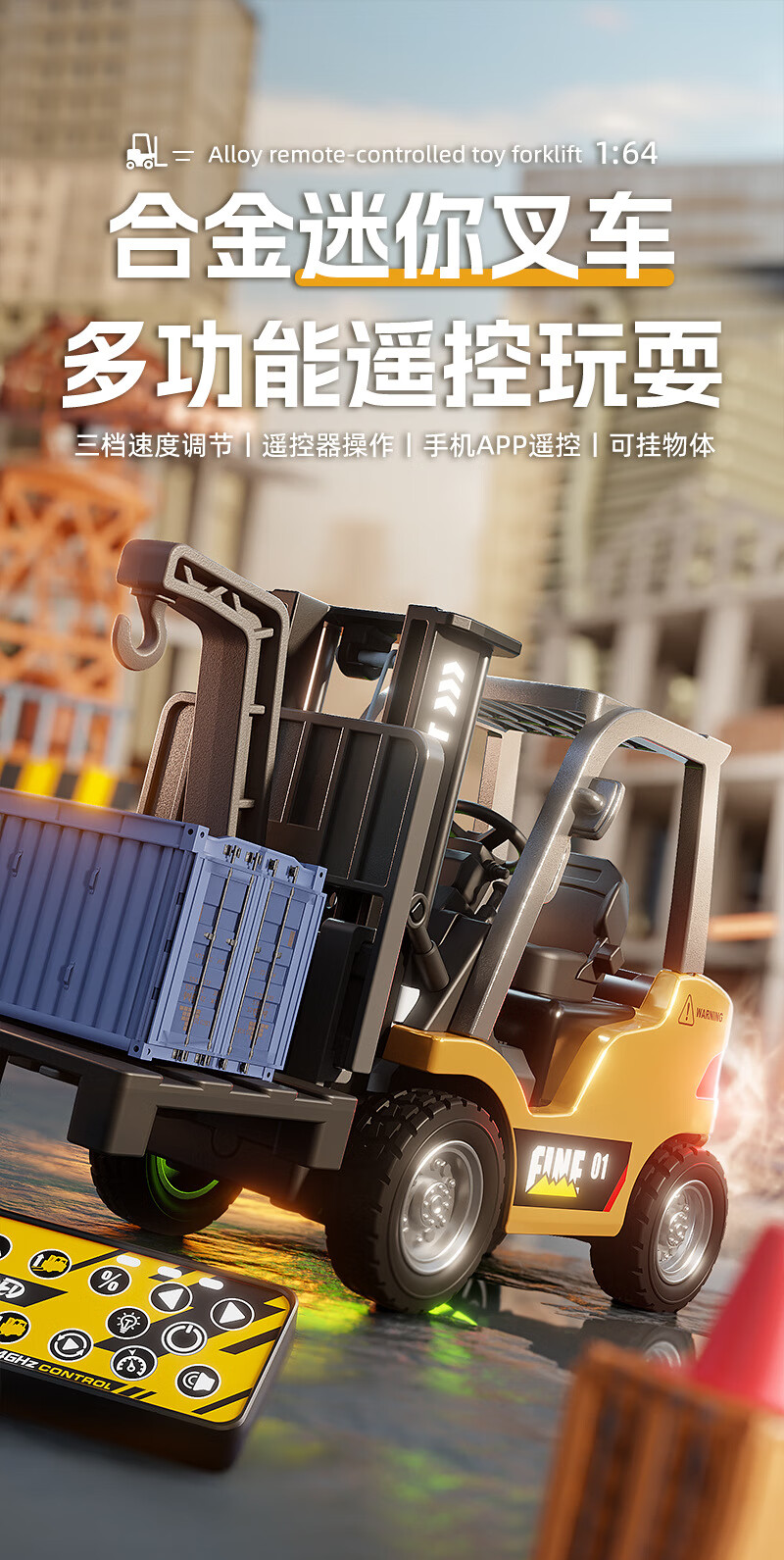 Mini alloy remote control forklift desktop lifting cargo rc engineering small car children and boys stacker toys chassis lighting card remote control 8cm small forklift lifting fork_3 gears Bluetooth APP + mini remote control 30 minutes of battery life + USB charging cable