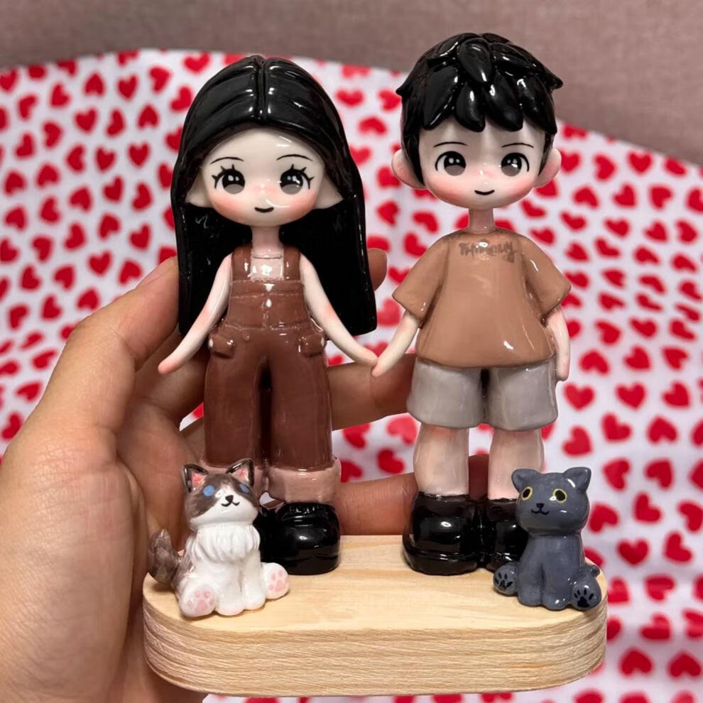 He Jiagong stone plastic clay diy ornaments stone plastic custom clay doll character soft clay Q version decoration clay couple wedding graduation day gift real person double wedding dress (15 cm)