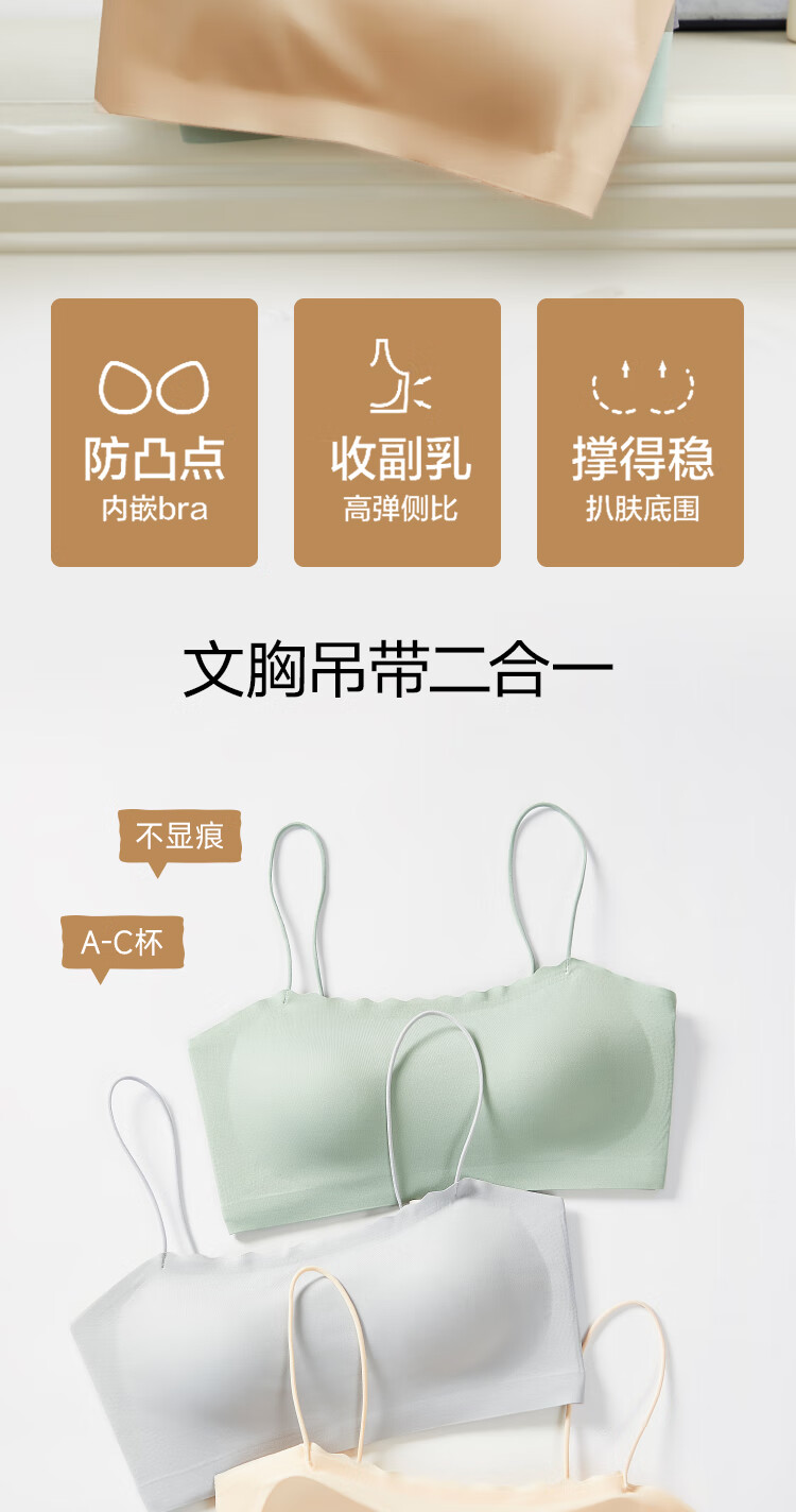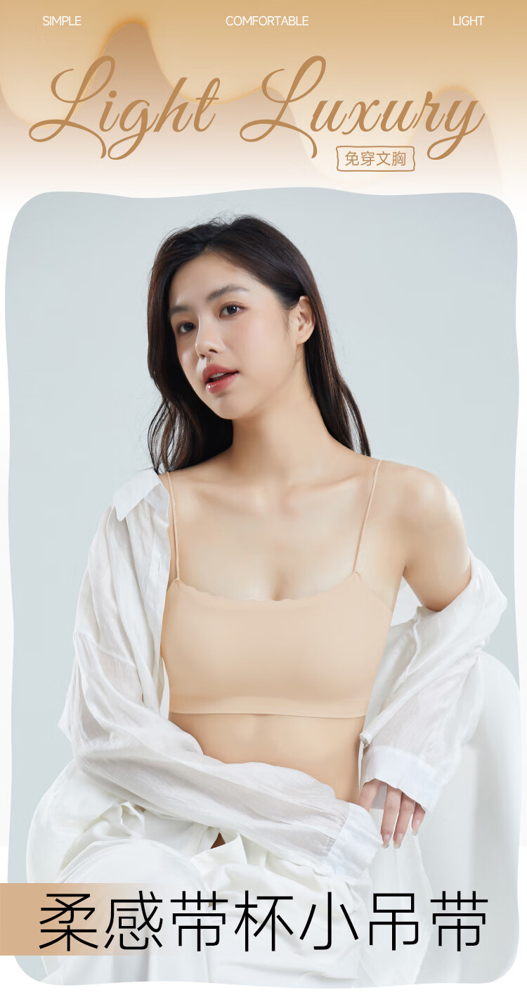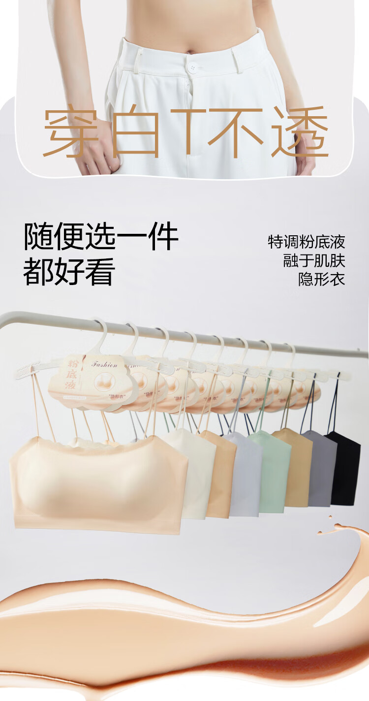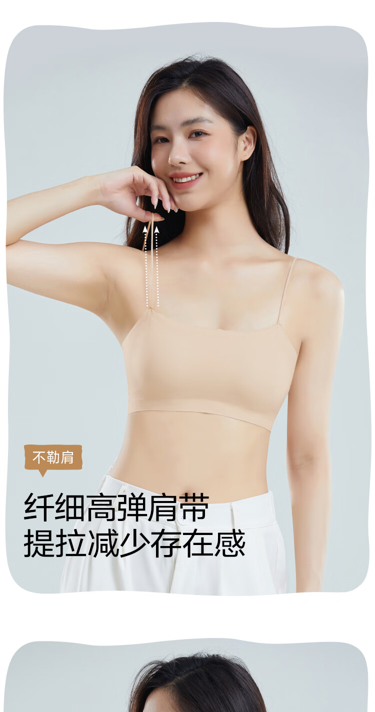 LangSha Seamless Beautiful Back Bandeau Bra for Women with Small Breasts Gathered and Can Expose Spaghetti Straps One-piece Fixed Cup Vest Bra White Can Expose Spaghetti Straps Vest M (105Jin Jin is equal to 0.5kg and below 32/70, 34/75ABC)