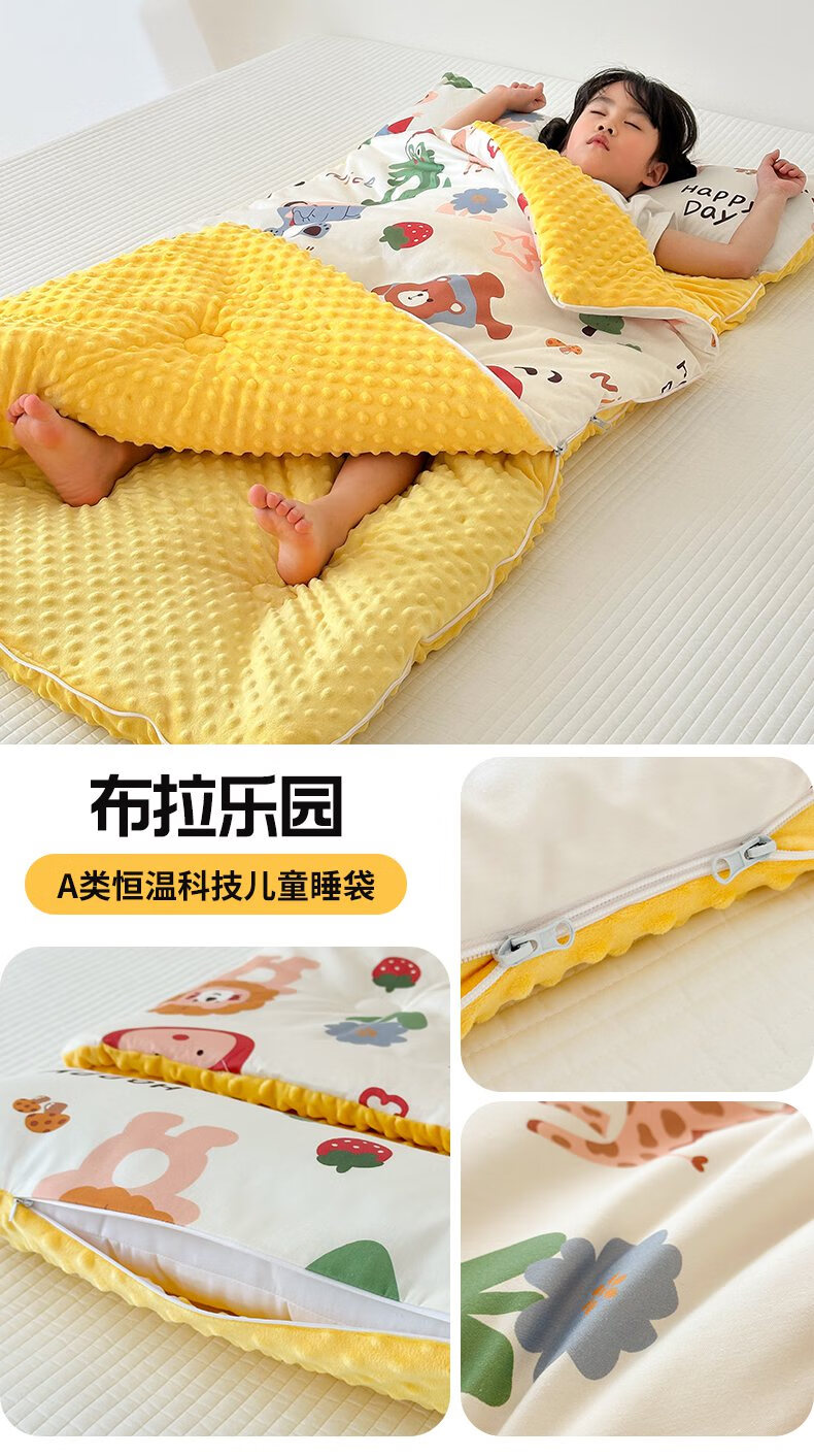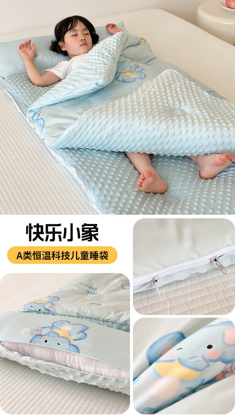 Yalu children's anti-kick quilt, spring and autumn quilt, autumn and winter sleeping bag, baby anti-kick quilt, dual-purpose artifact for older children, suitable for all seasons, Happy Little Elephant, 100*150 + pillow core 30*75, spring and autumn style 4Jin Jin equal to 0.5kg