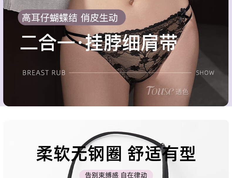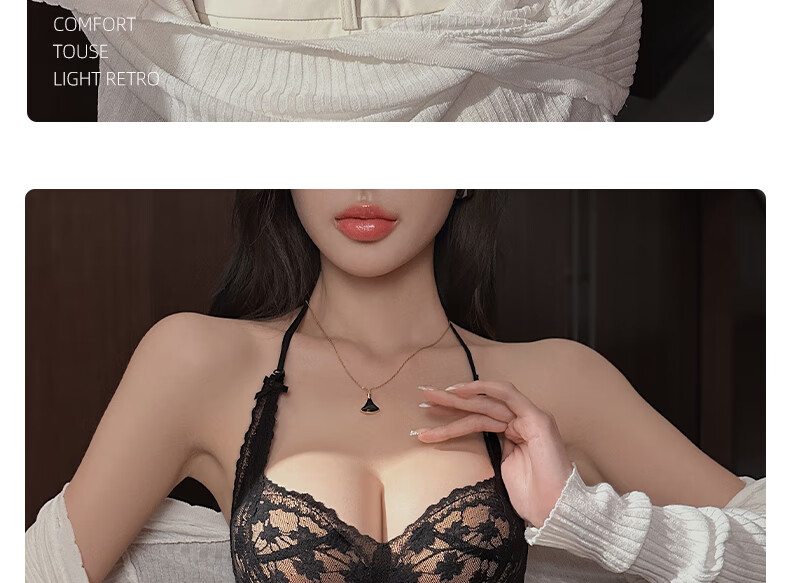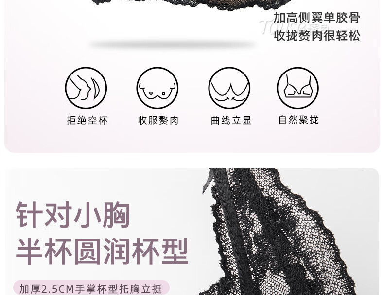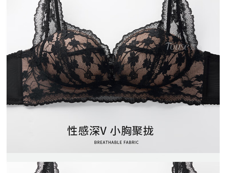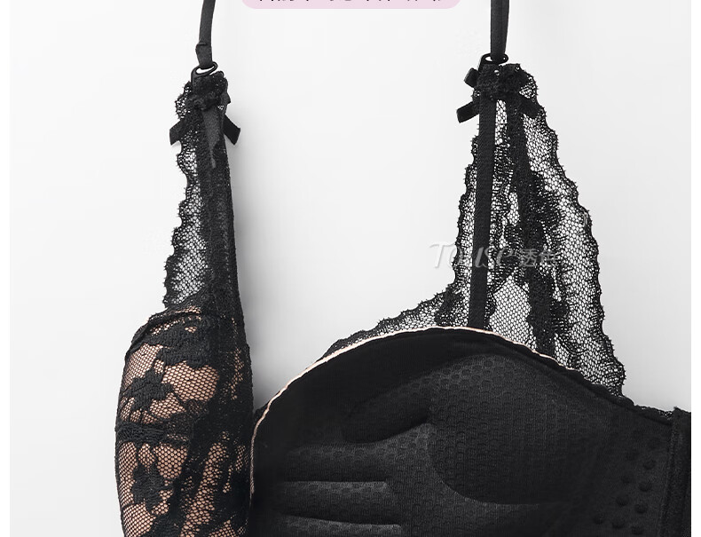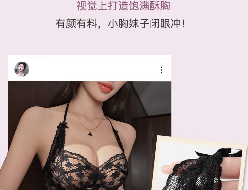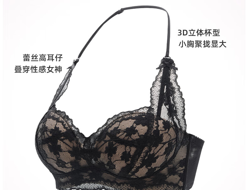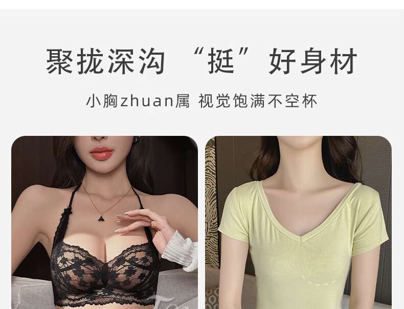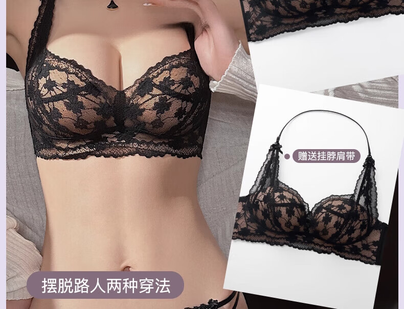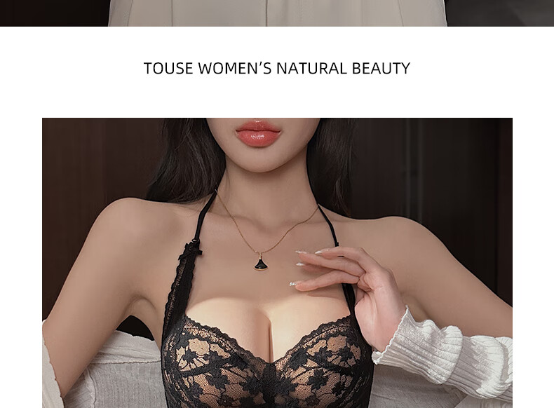 Victoria's Secret Lace Halter Neck Bra Women's Small Breasts Push Up to Show Bigger Side Breasts Anti-Sagging Sexy Tube Top Black-Single Piece 70A 32 Push Up to Show Bigger Size