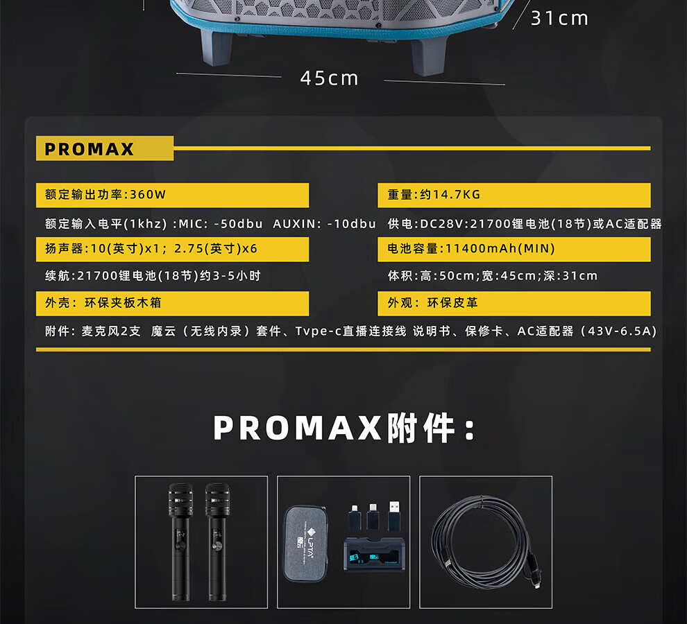 LPTA Magic 3 PRO MAX Audio 2025 Magic 3 Speaker Outdoor Playing and Singing Acoustic Guitar with Sound Card Microphone High Power Magic 3 PRO MAX Speaker (360W) (Blue)