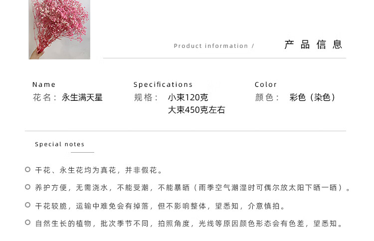 Jatu Dace Festival Dried Flowers Everlasting Gypsophila Real Flowers Home Wedding Decoration Flower Arrangement Window Soft Decoration Landscaping Dream Star Yunnan Straight Everlasting Gypsophila Light Pink About 120g