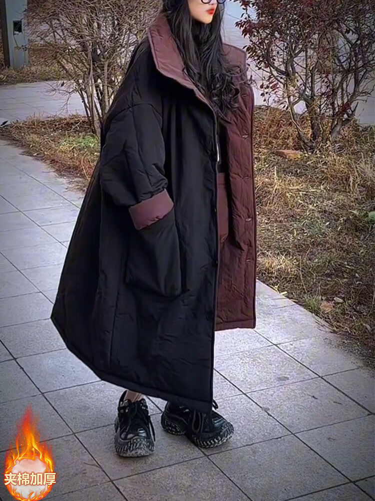 G.duck girls double-sided parent-child cotton coat 2025 winter style big children's long over-the-knee thickened cotton coat large quilt warm jacket double-sided large quilt cotton coat size 160 recommended height around 160