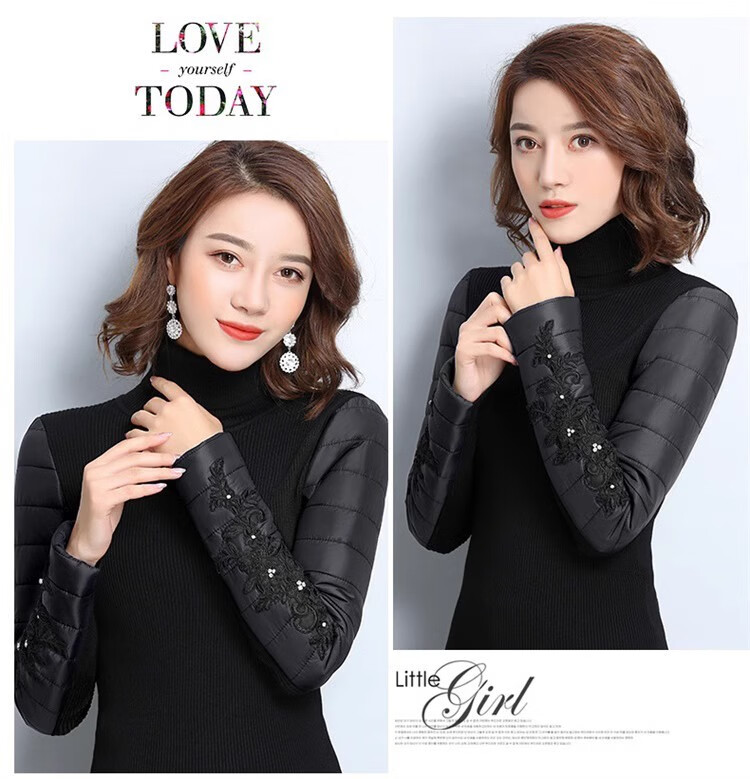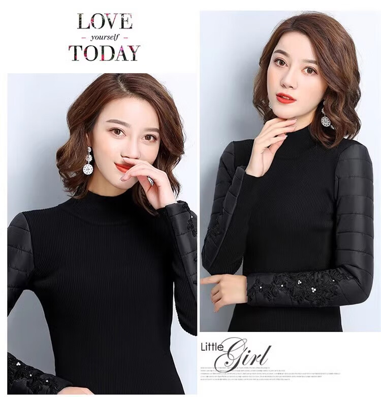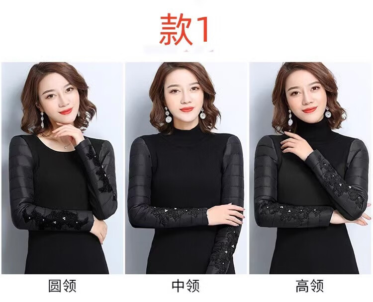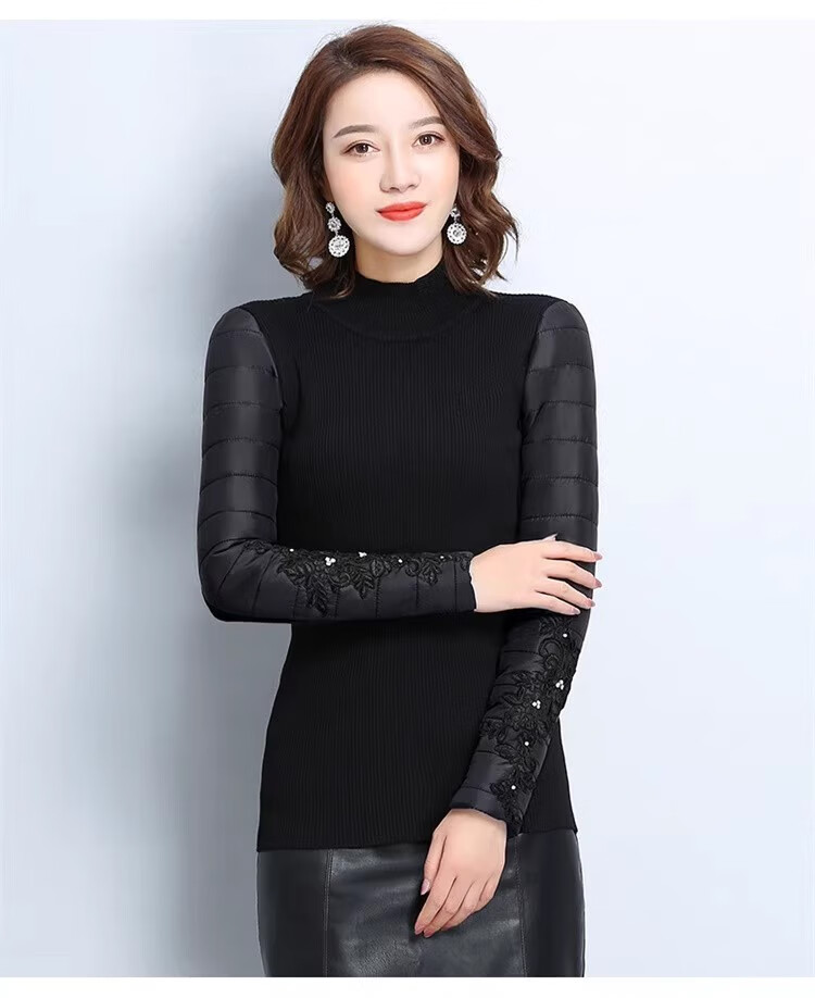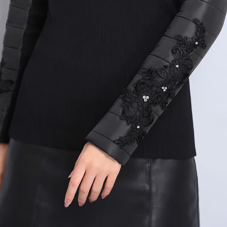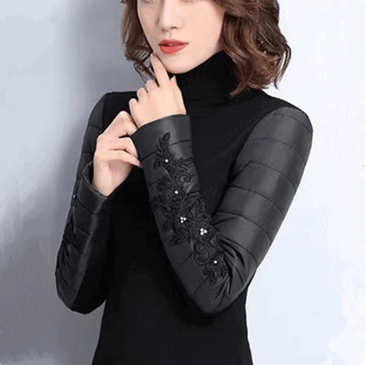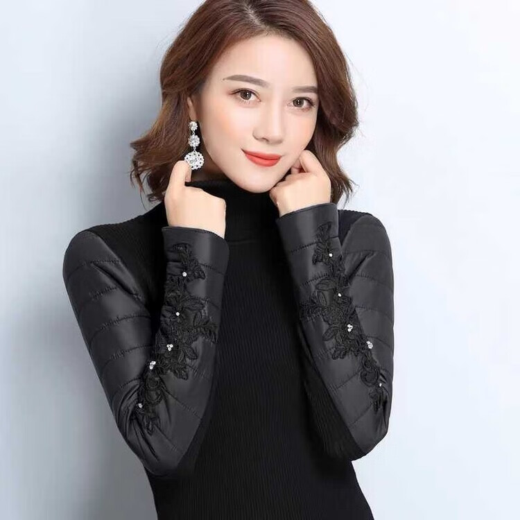 CARSEMKEITN Down Sleeves Cotton Sleeves Bottoming Shirt Women's Winter Sleeves Thickened Warm Sweater with Fur Vest, Diamond Cloth Model (Fully Velvet) High Collar L (111-125Jin Jin is equal to 0.5kg)