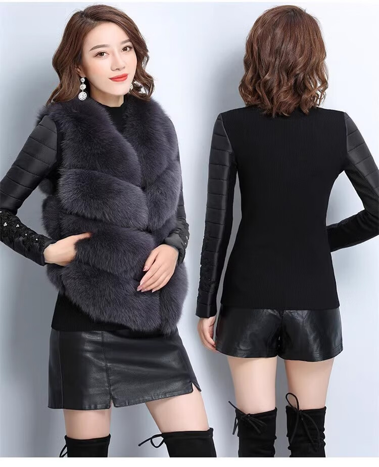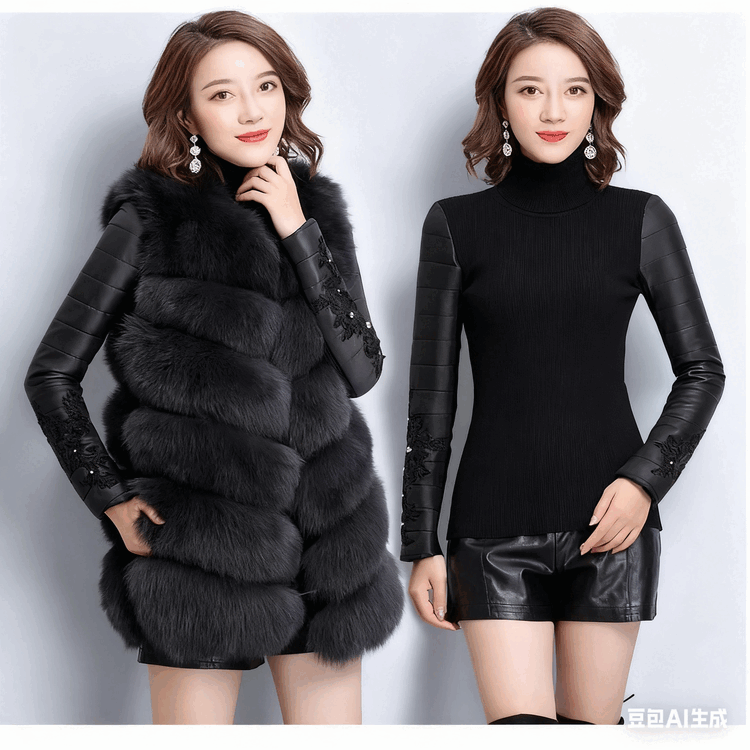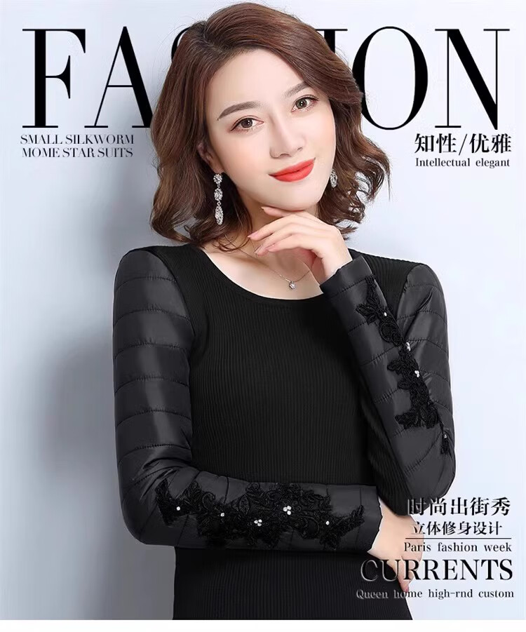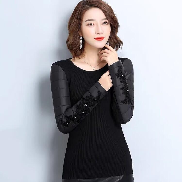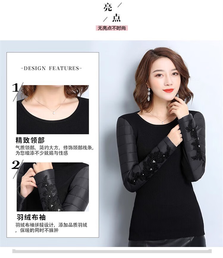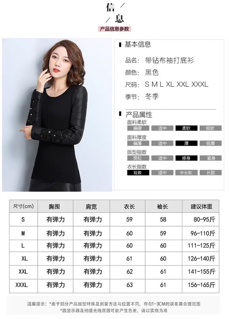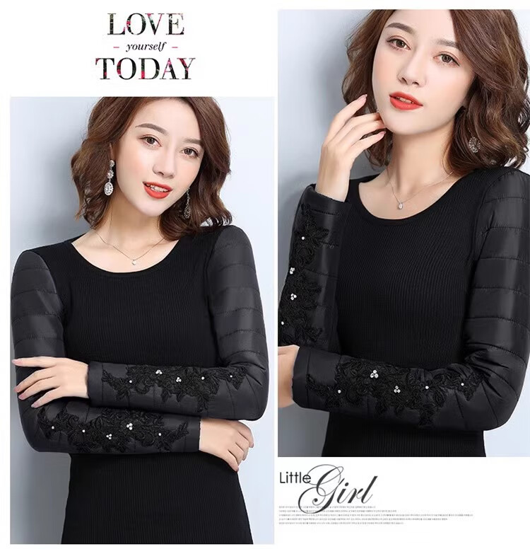 CARSEMKEITN Down Sleeves Cotton Sleeves Bottoming Shirt Women's Winter Sleeves Thickened Warm Sweater with Fur Vest, Diamond Cloth Model (Fully Velvet) High Collar L (111-125Jin Jin is equal to 0.5kg)