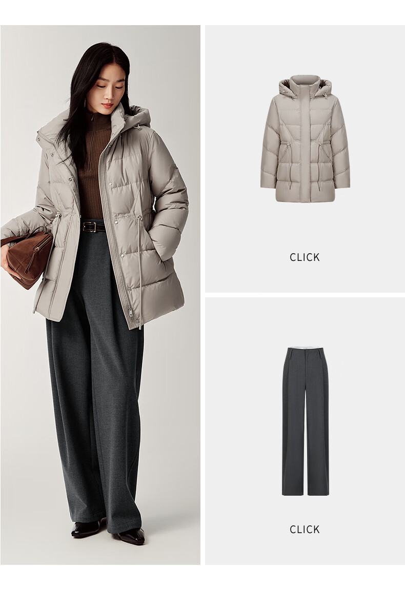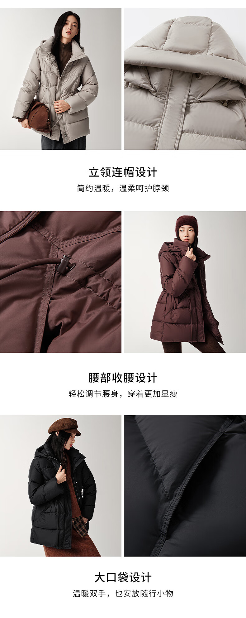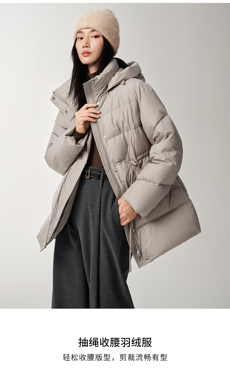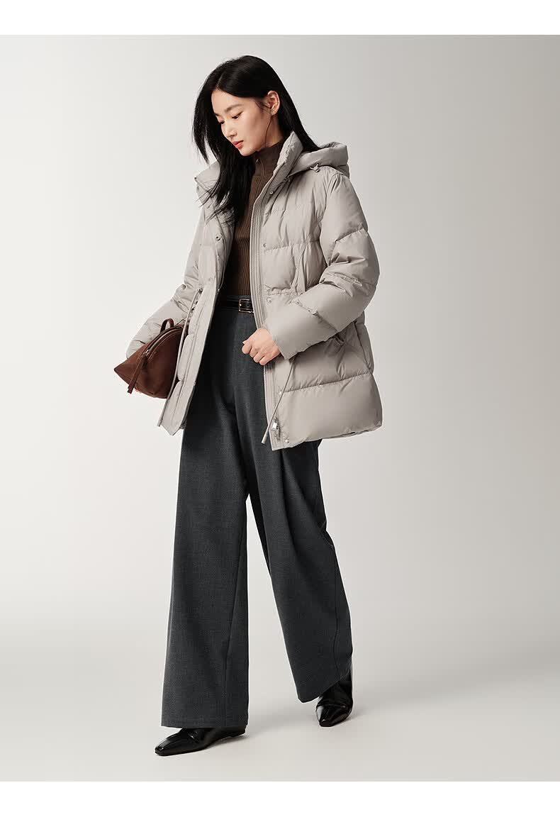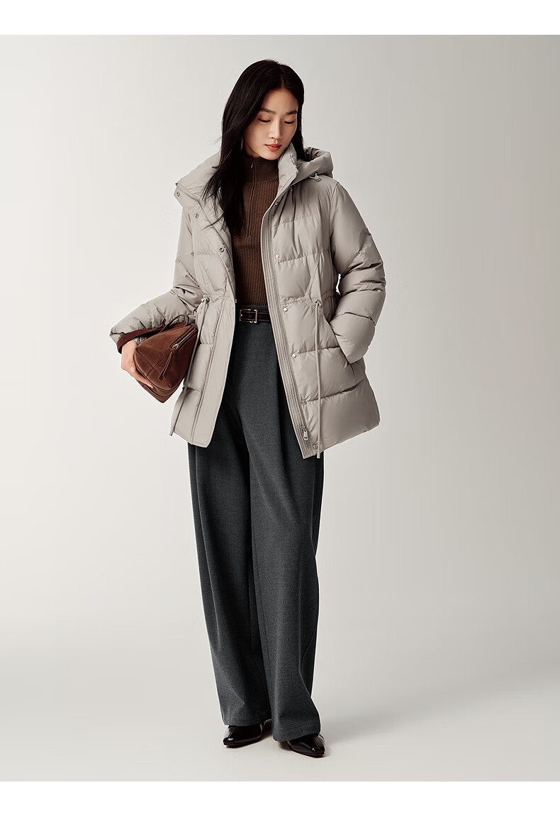 Jiuzi Annako Elegant Commuting Style Three Anti-heating Hooded Waist-Slimming Duck Down Down Women's Winter New Style Light Gray S