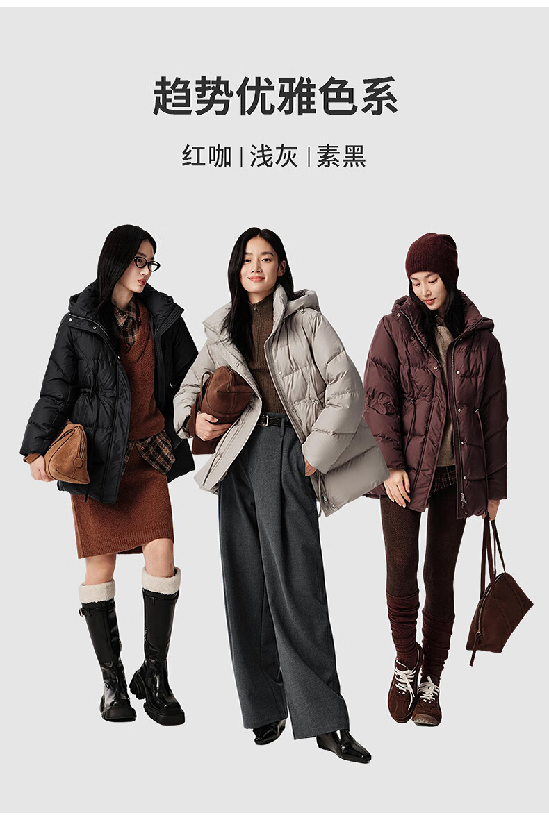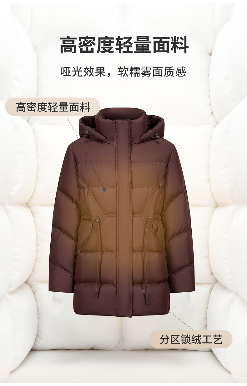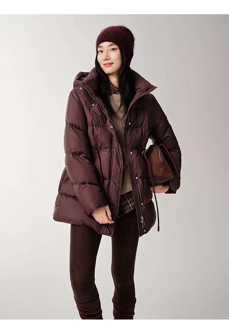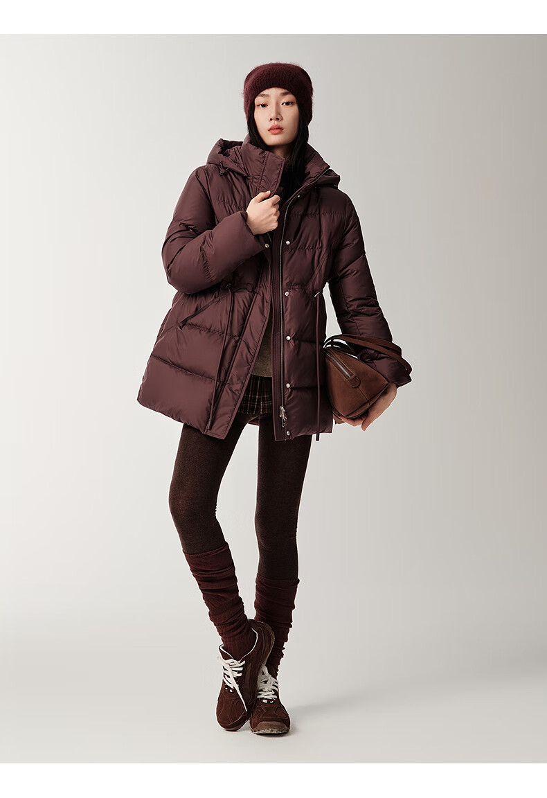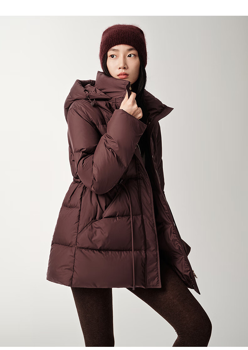 Jiuzi Annako Elegant Commuting Style Three Anti-heating Hooded Waist-Slimming Duck Down Down Women's Winter New Style Light Gray S