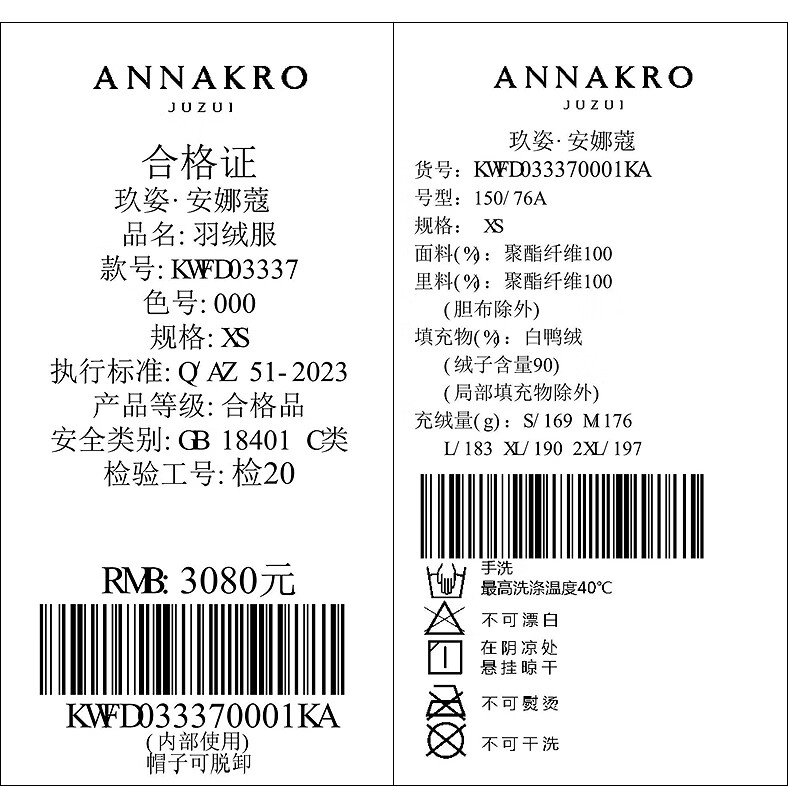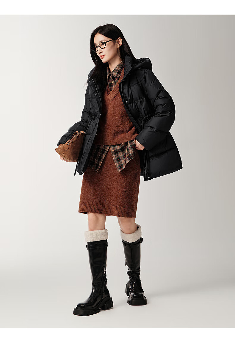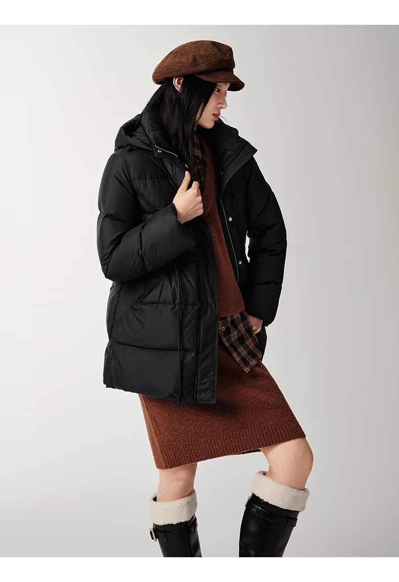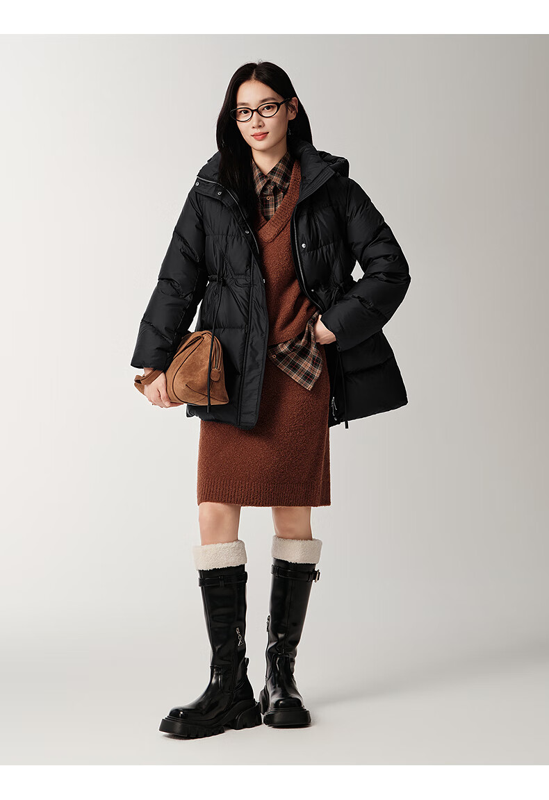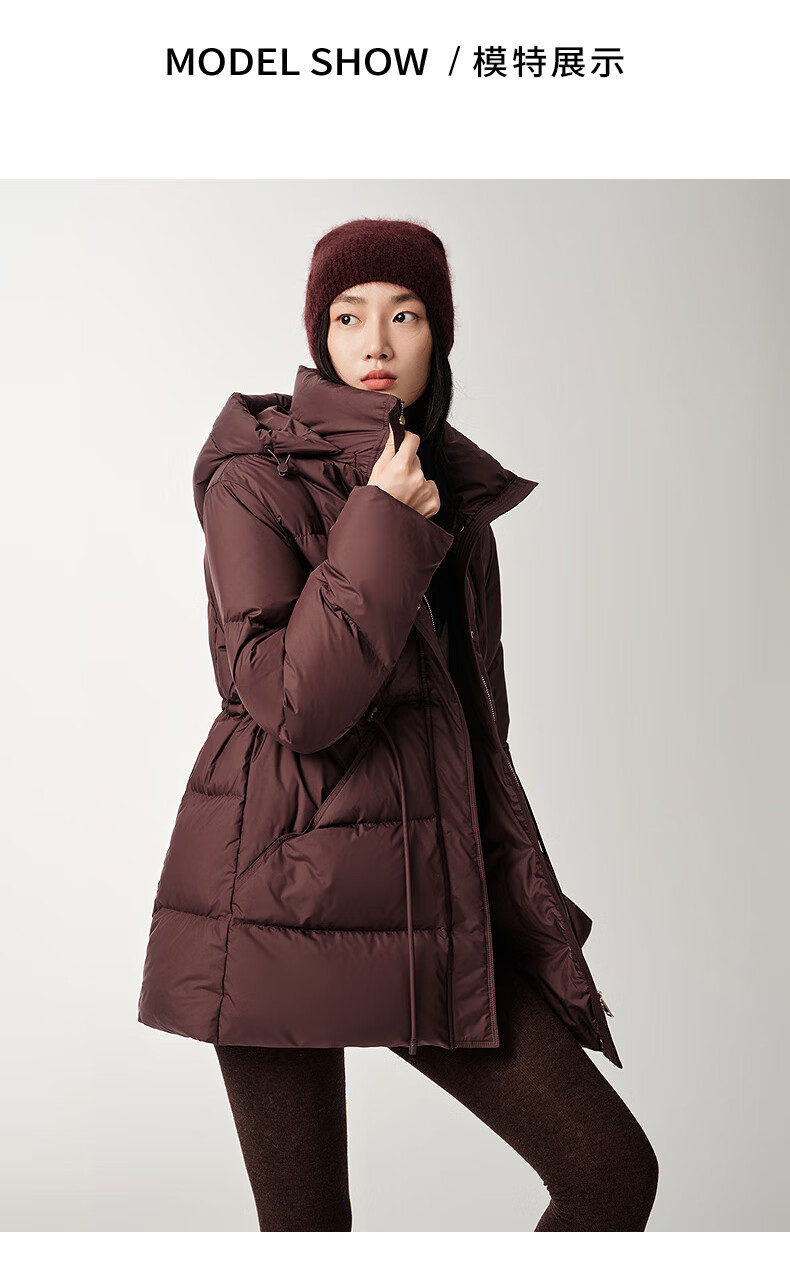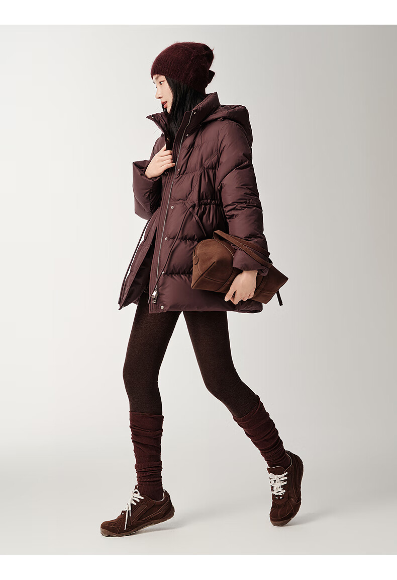 Jiuzi Annako Elegant Commuting Style Three Anti-heating Hooded Waist-Slimming Duck Down Down Women's Winter New Style Light Gray S