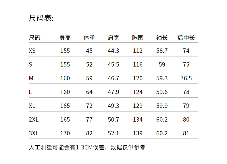 China (cm) 160-165/84-86 165-170 / 88-90 167-172 / 92-96 168-173 / 98-102 170-176 / 106-110