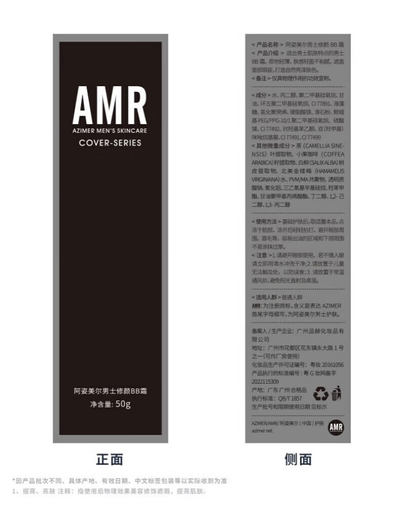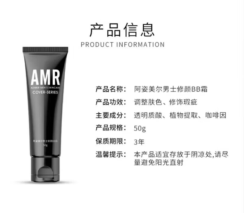 Azimeier direct sales store AMR men's makeup cream Azimeier bb cream concealer acne marks and brightening foundation AMR men's makeup cream 50g*2 bottles