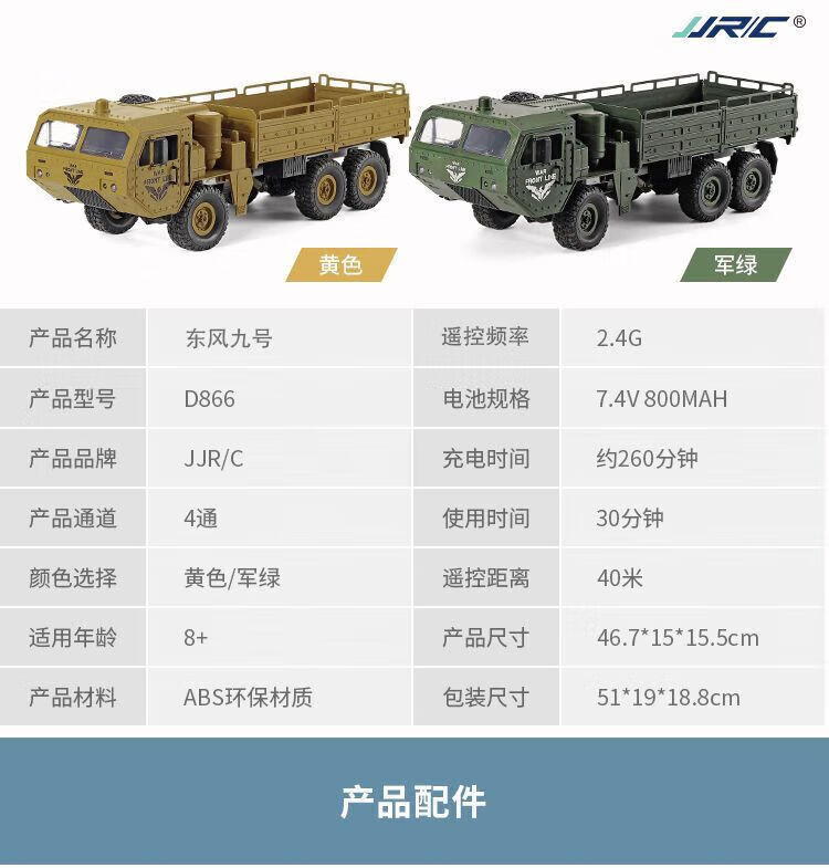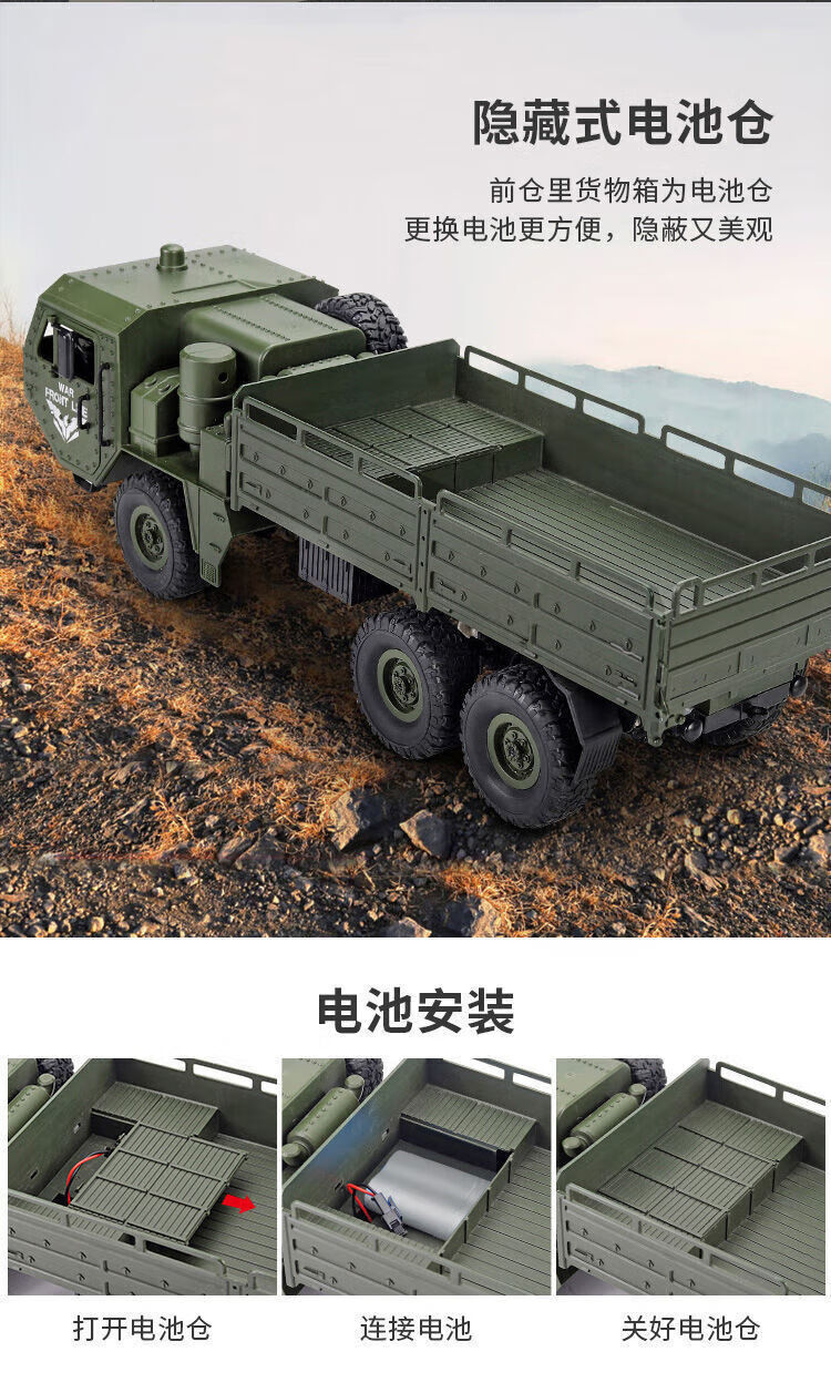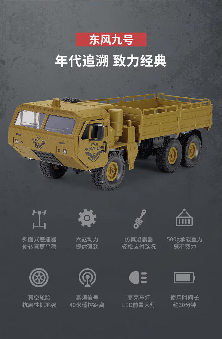Children's military truck heavy-duty six-wheel drive off-road climbing vehicle RC remote control car adult boys' toys remote control toy car 46cm Dongfeng No. 9 military card