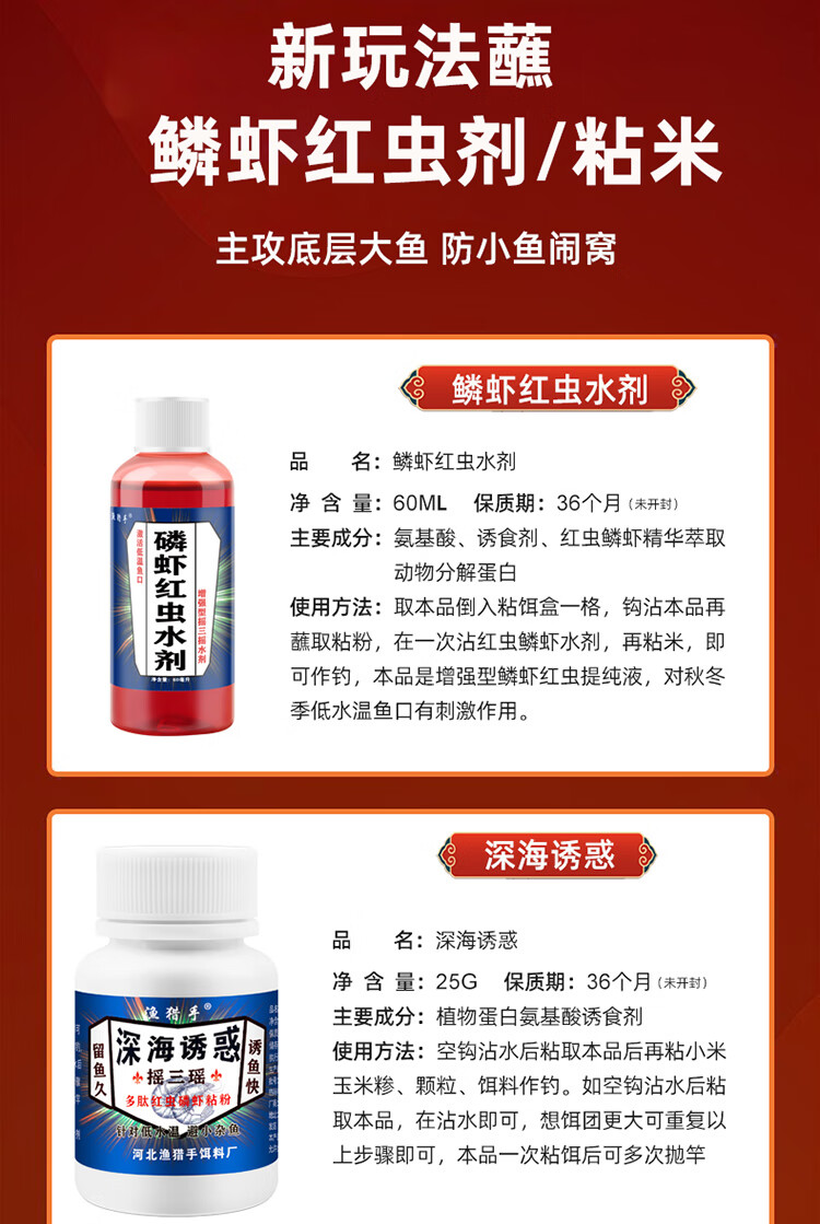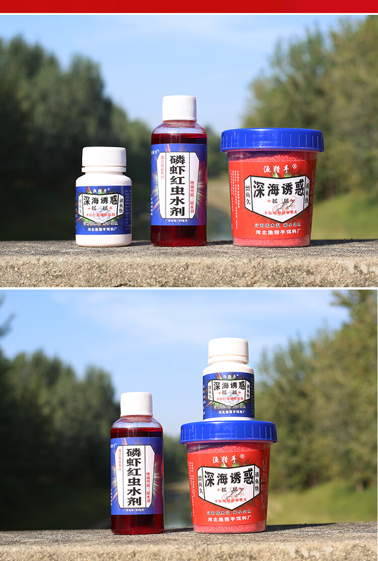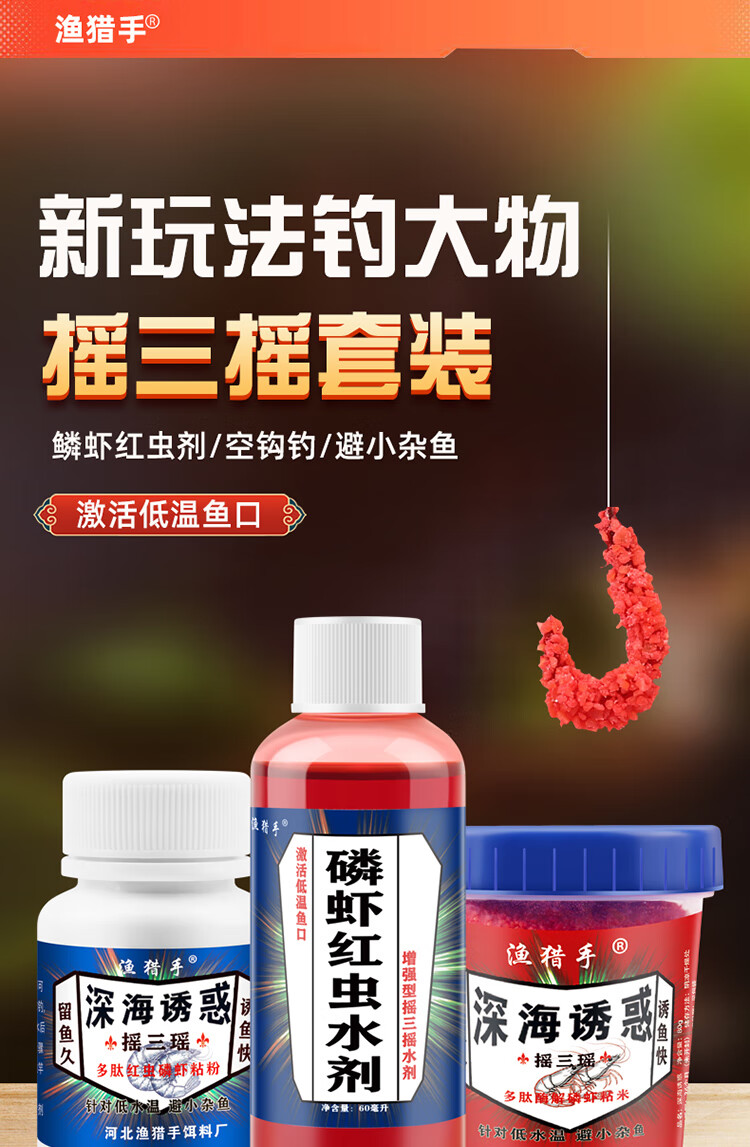 Shake three shake fish bait, special fishing sticky powder for wild fishing, empty hook sticky rice sticky bait, crucian carp dipped in krill and red worm liquid set, deep sea temptation- shake three shake set