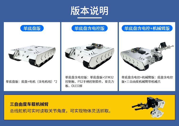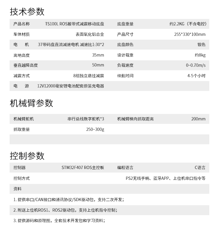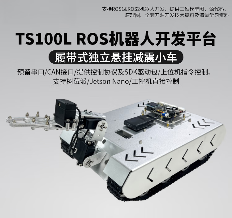 Lingle TS100L crawler type off-road shock-absorbing car ROS robot open source development platform unmanned vehicle chassis model customized model single chassis with electronic control + robotic arm version 11-wire Hall encoder