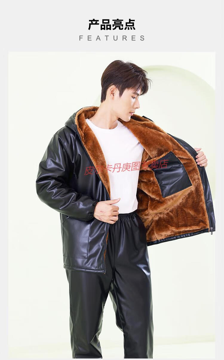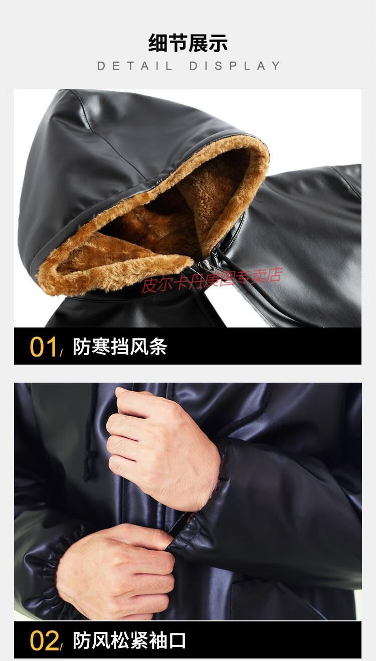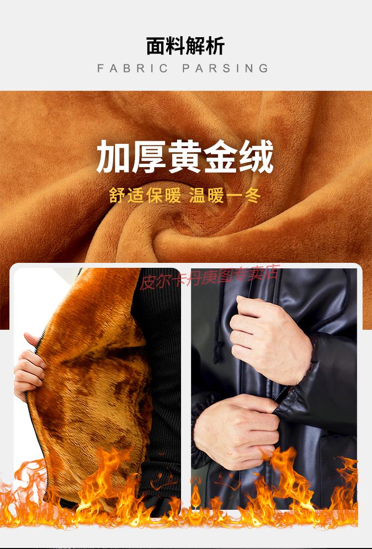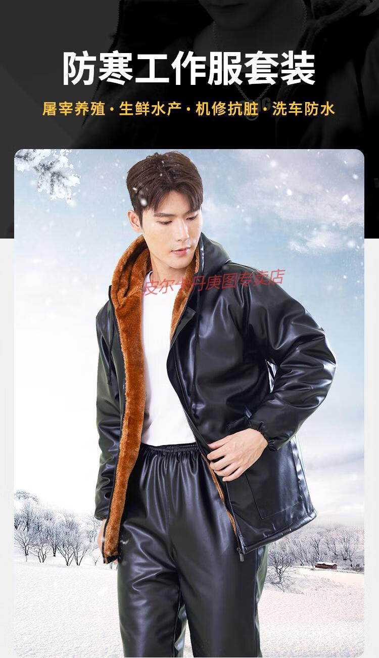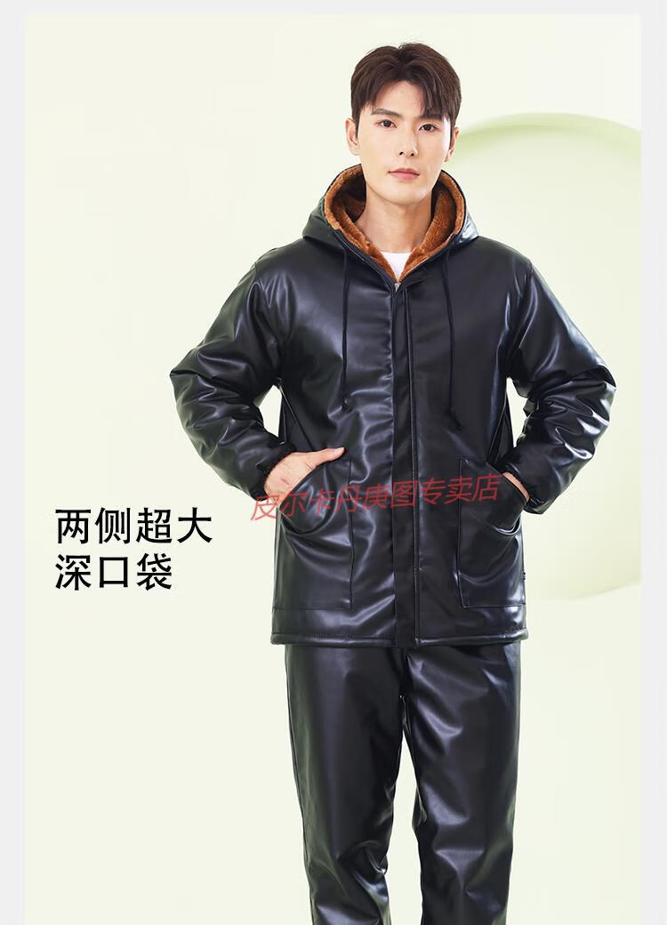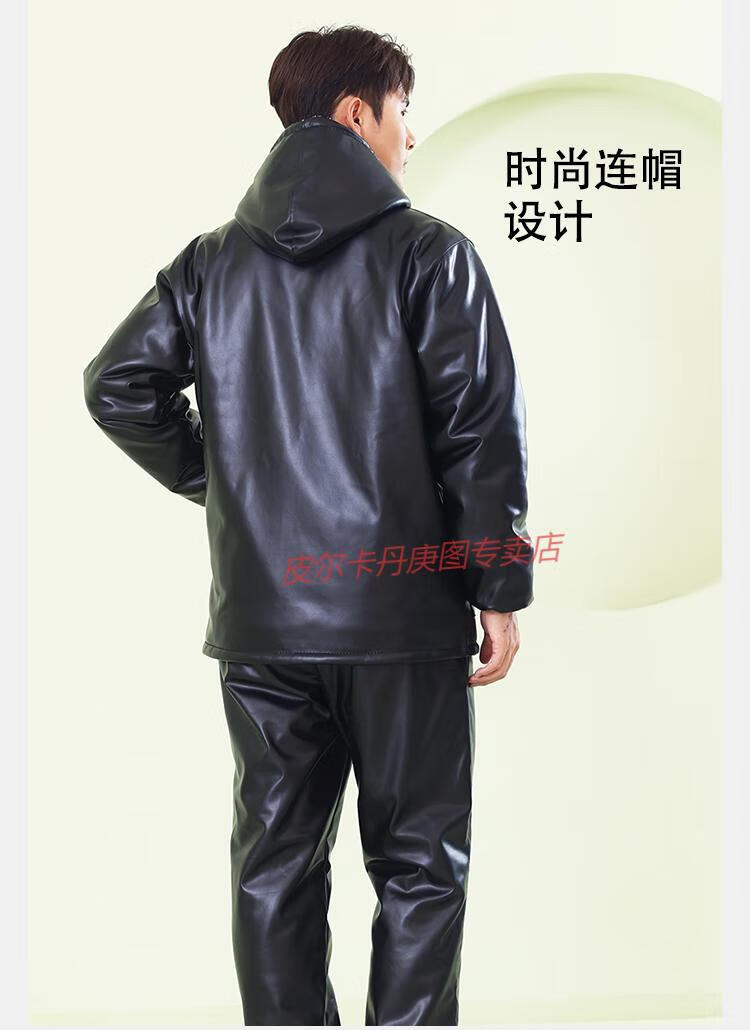 Pierre Cardin cold-proof work clothes cold storage leather jacket and leather trousers suit men's velvet thickened winter PU windproof and warm labor protection leather cotton jacket, patch pocket hooded leather jacket + cotton trousers two-piece set regular XL (135Jin Jin is equal to about 0.5 kg)