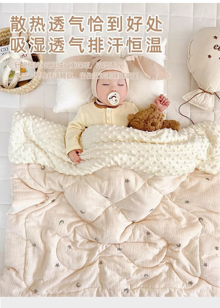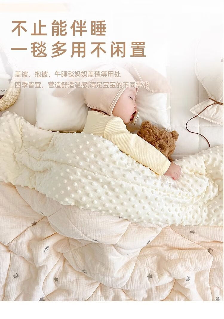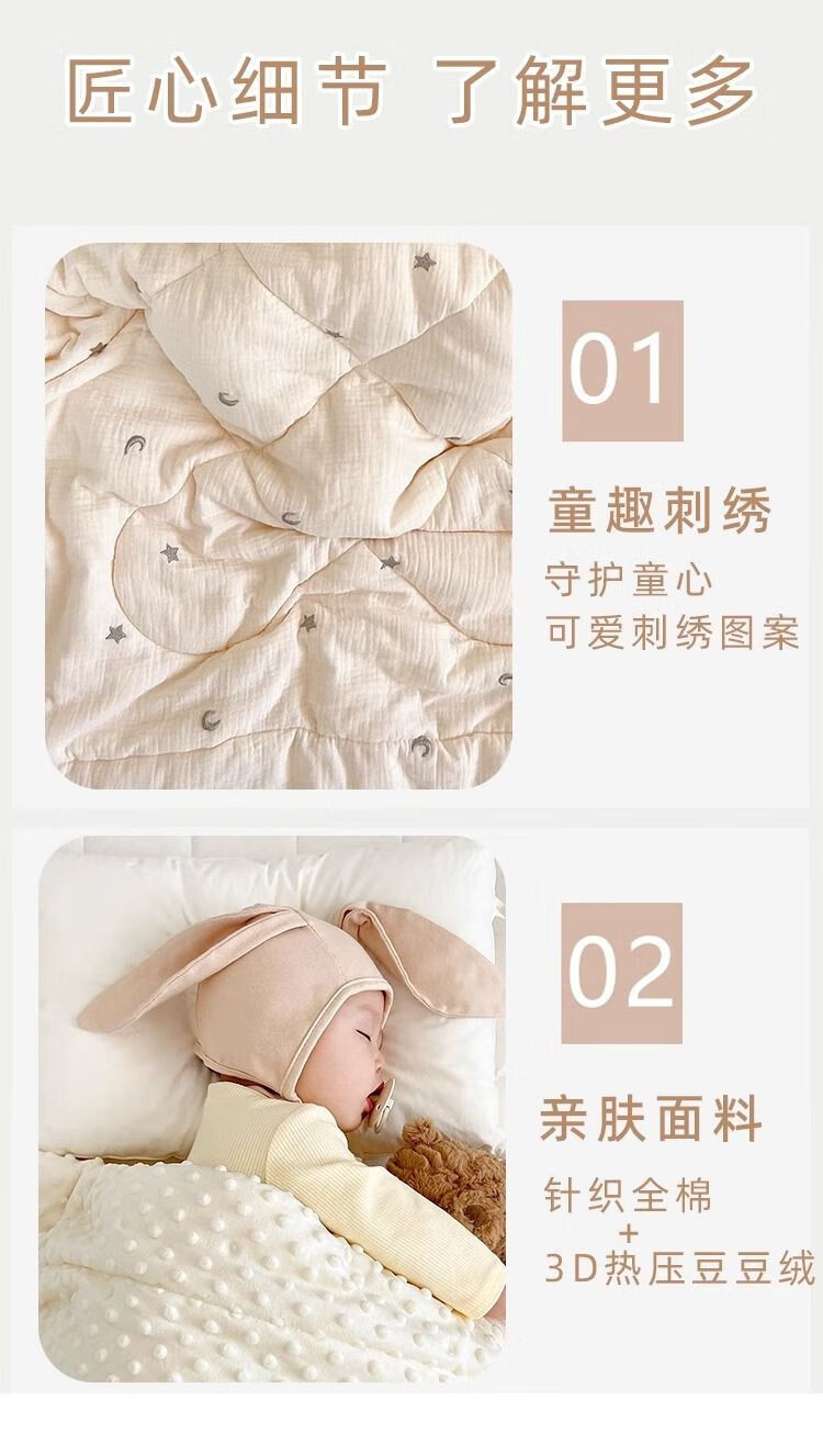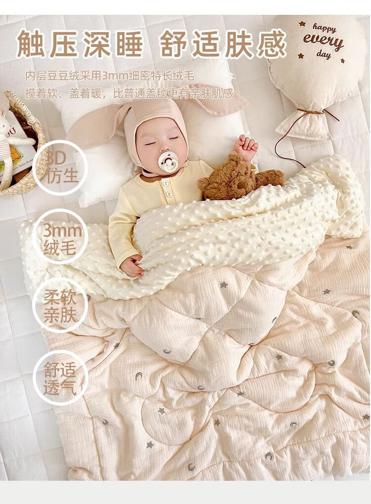 Newborn baby spring and autumn blanket, children's air-conditioned quilt, kindergarten quilt, autumn and winter quilt, soothing beanie plush blanket, bear head-embroidered beanie quilt 120x100cm