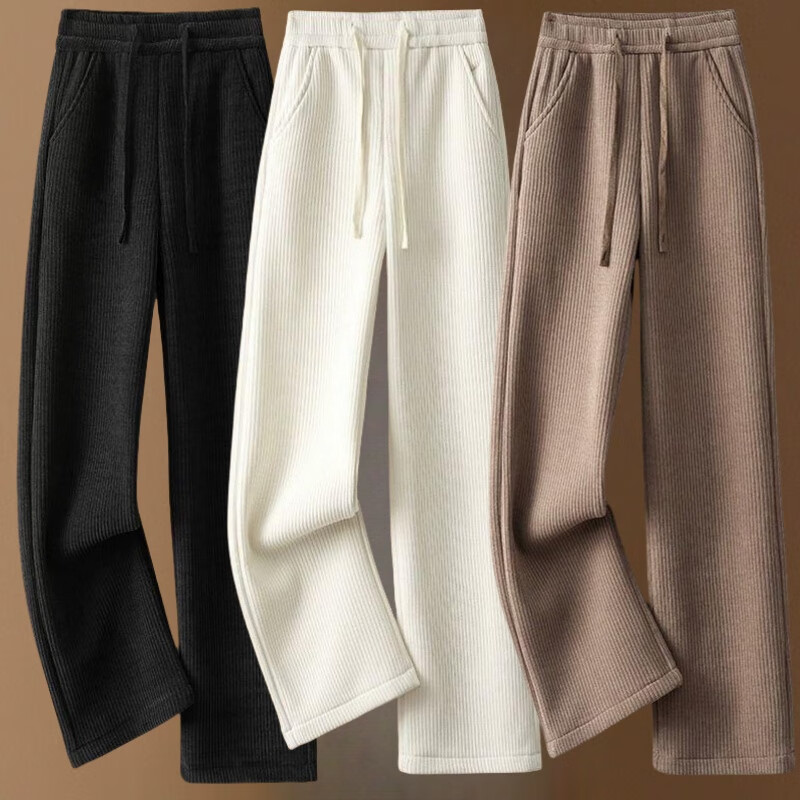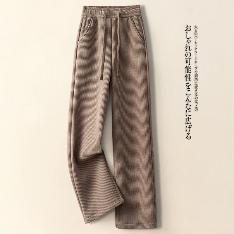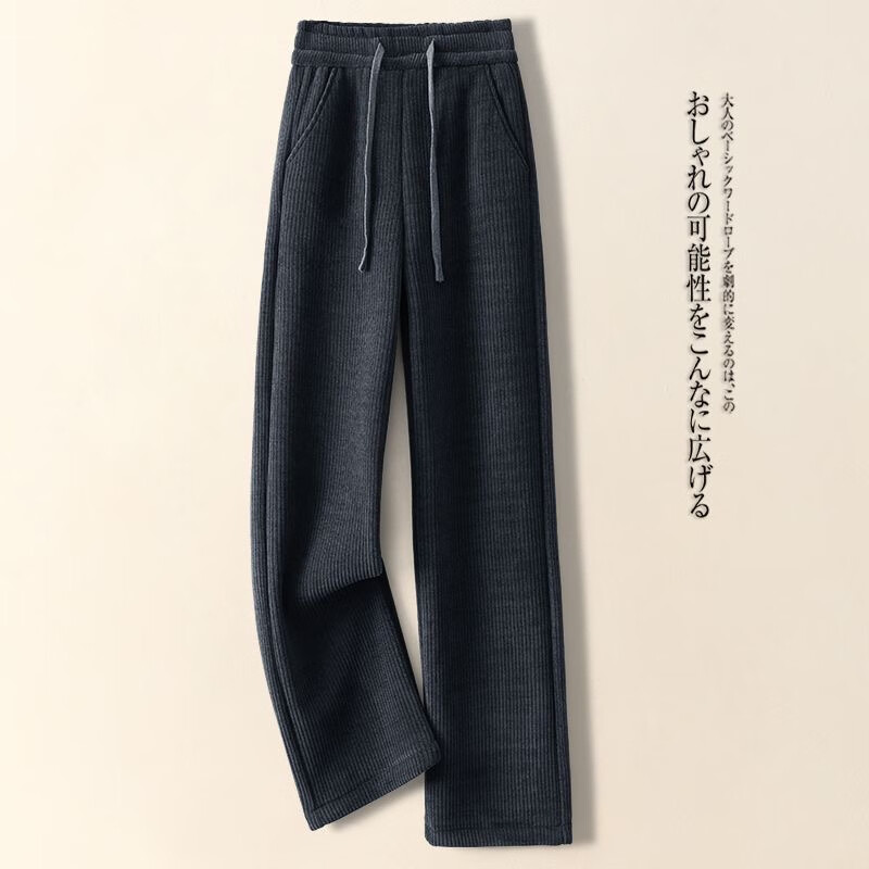 Hengyuanxiang Narrow Wide Leg Pants Women's Autumn and Winter 2025 New Corduroy Plus Velvet Warm Chenille Drape Straight Pants Versatile Gray Velvet Thickening Pocket Corduroy Wide Legs - Flagship Model XL Recommended 120-140 Jin Jin equals 0.5 kg