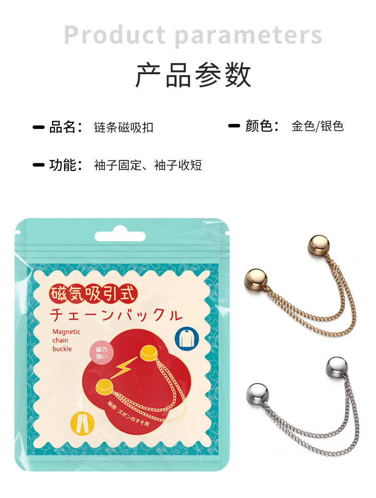 Pierre Cardin (Pierre Cardin) French imported high-quality Hanfu sleeve fixed buckle magnetic buckle chain buckle shirt hem shortened artifact waist clothes gold chain magnetic buckle sleeves shortened one pack