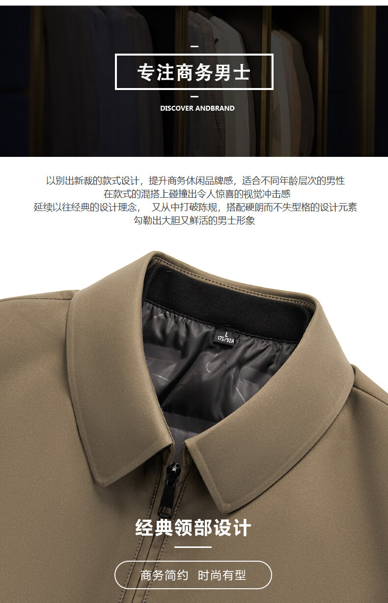 ZIOZIA Jiumu King Men's Lightweight Short Jacket 2025 Autumn and Winter New Business Executive Jacket Warmth - One-piece, two-wear - Removable inner liner M 170